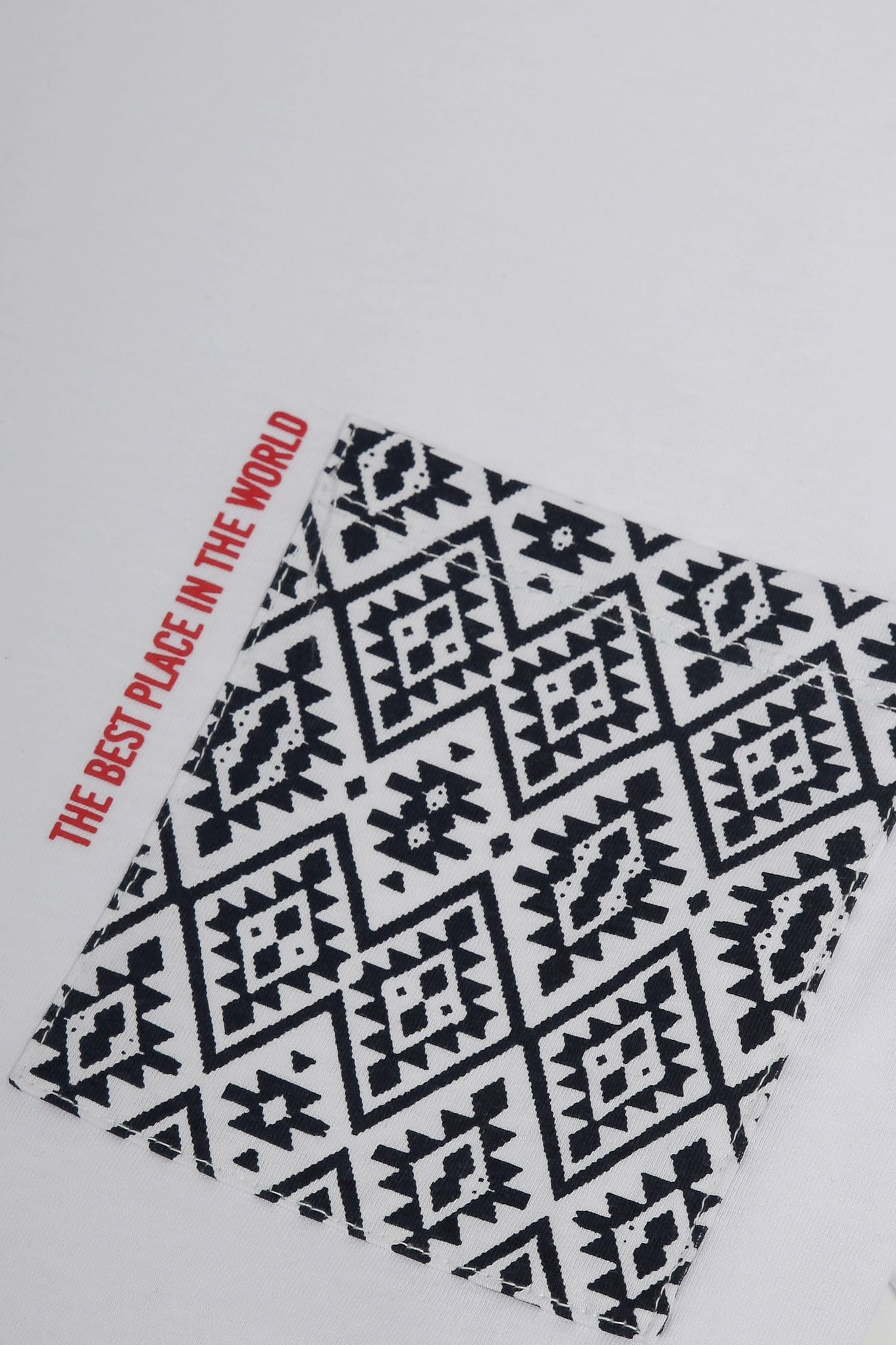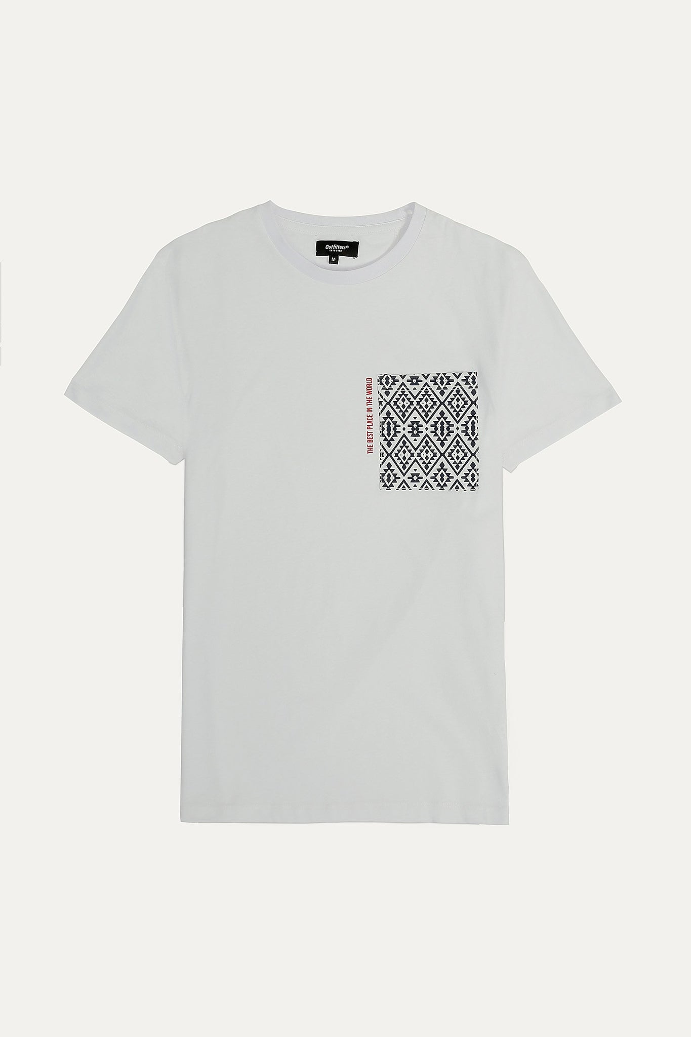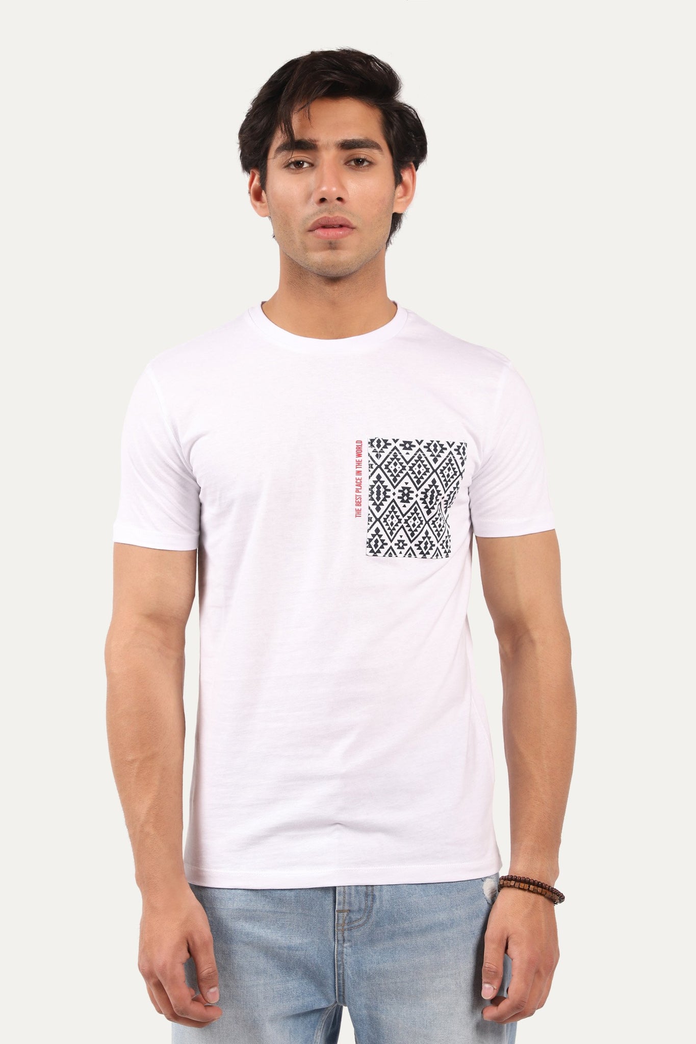 Printed Pocket style T-shirt featuring half sleeves, round neck and plain back