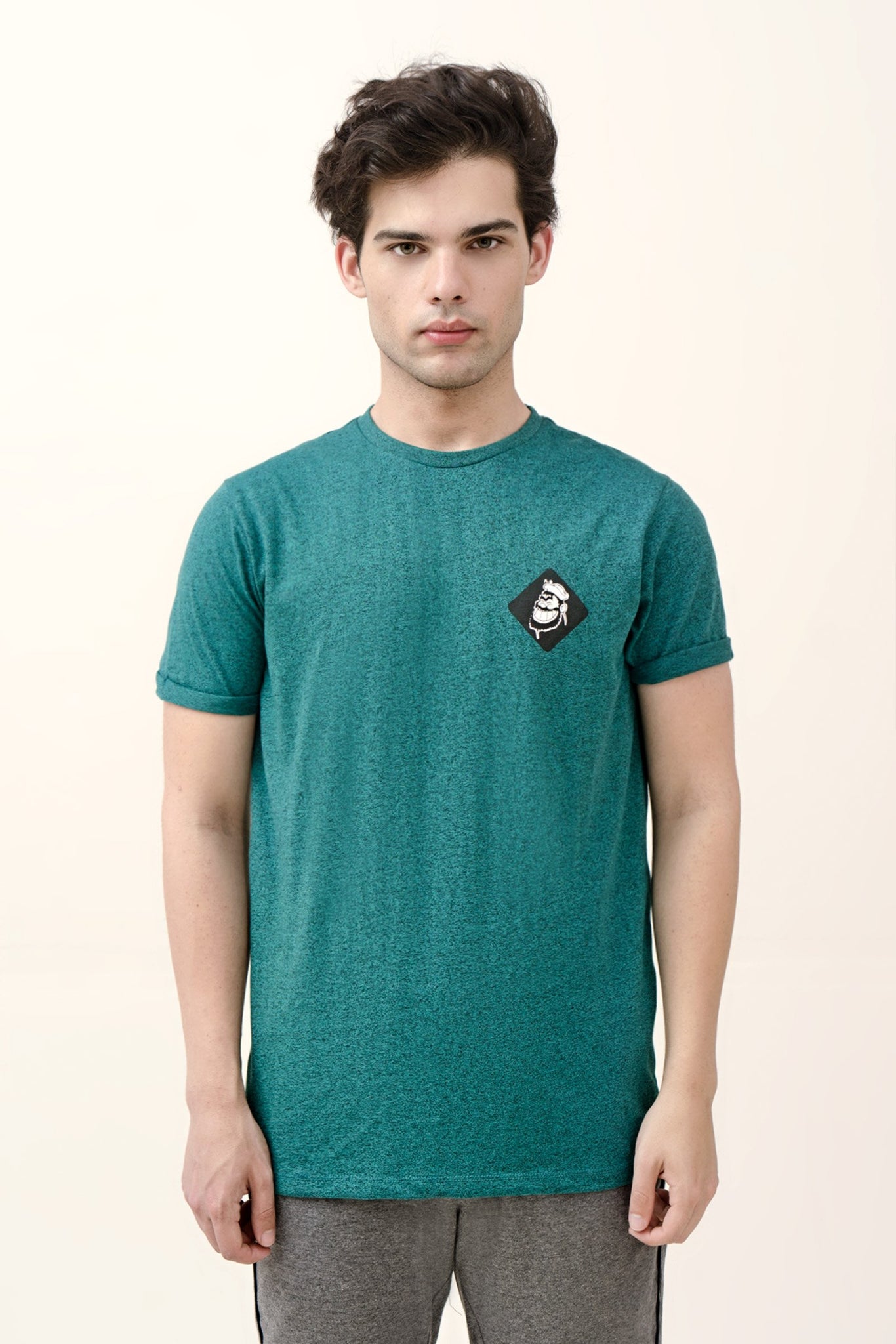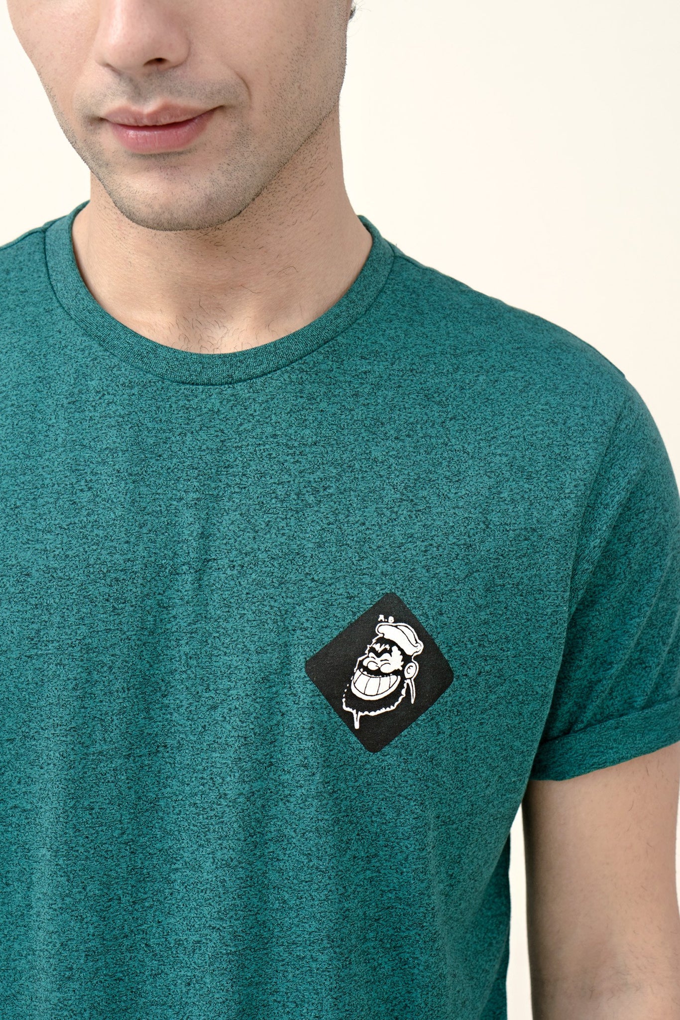 Graphic t-shirt featuring half sleeves, round neck and Bluto graphic emblem print details