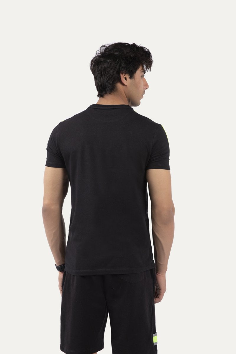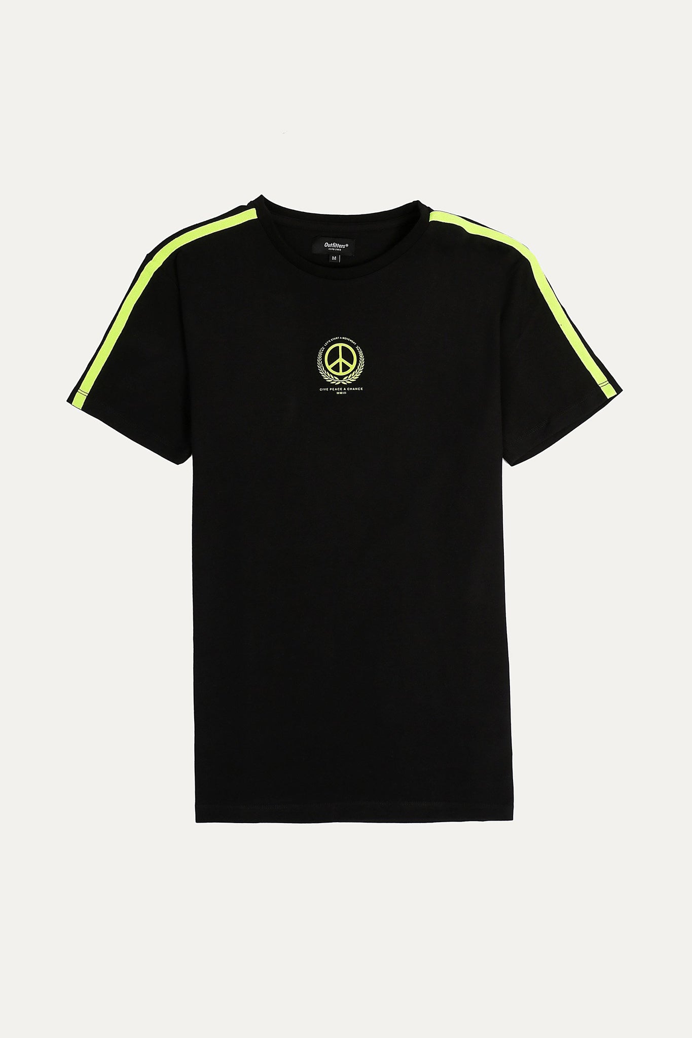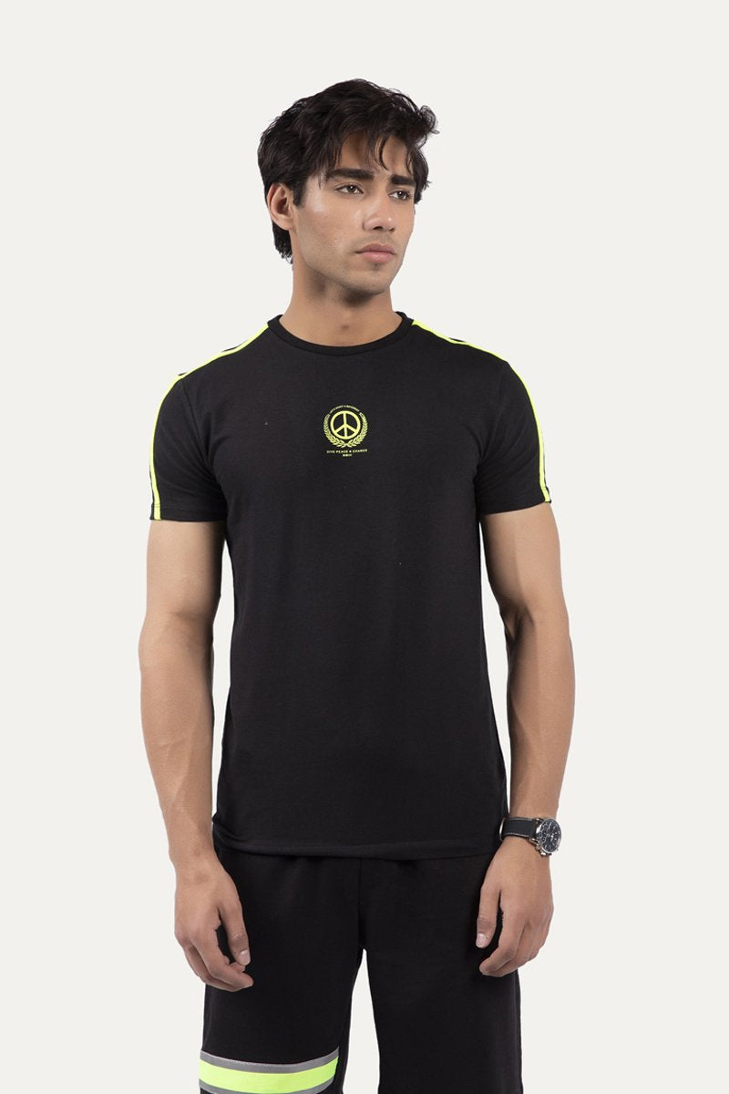 Logo Style T-shirt featuring half sleeves with yellow stripe and plain back