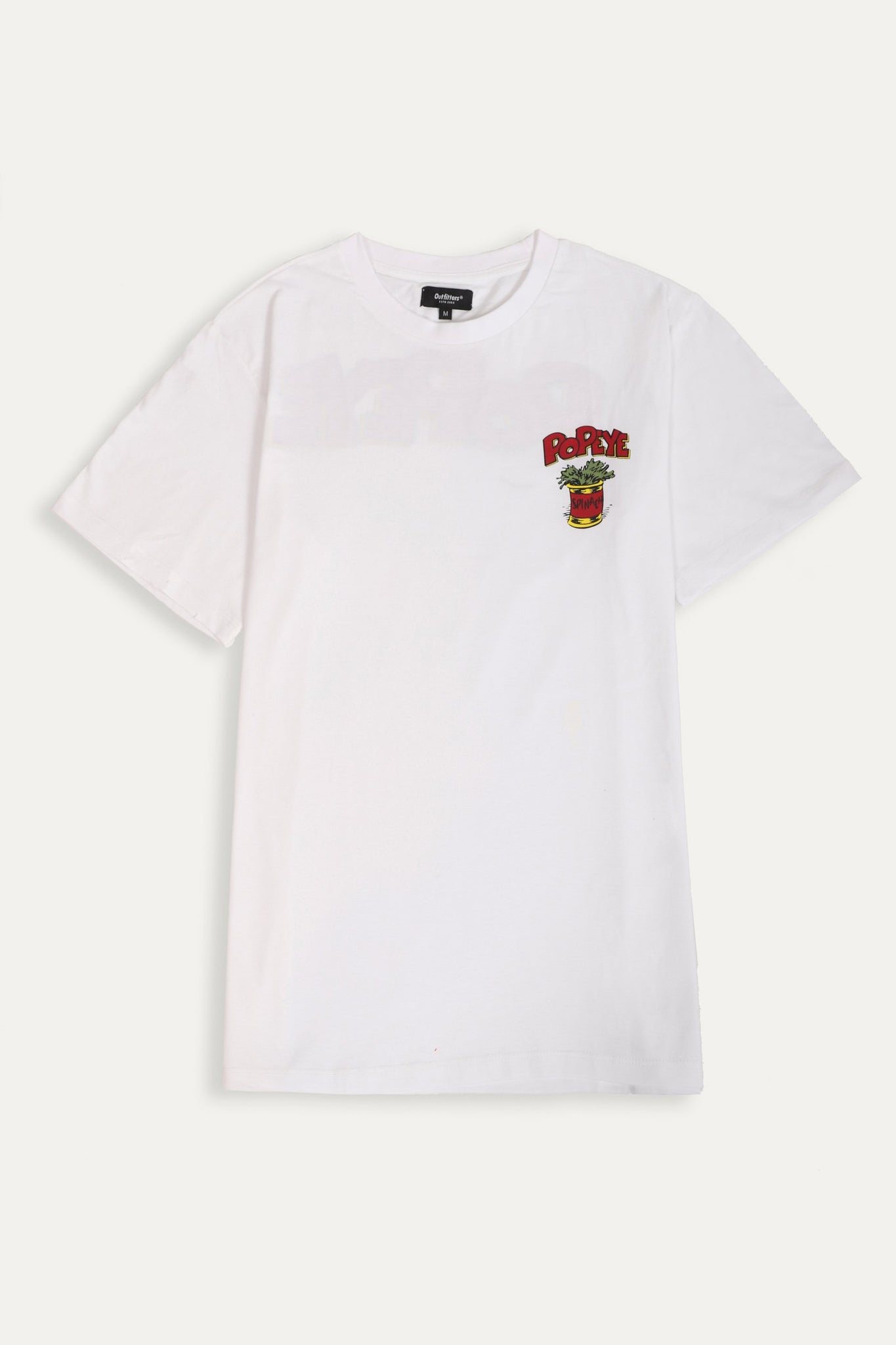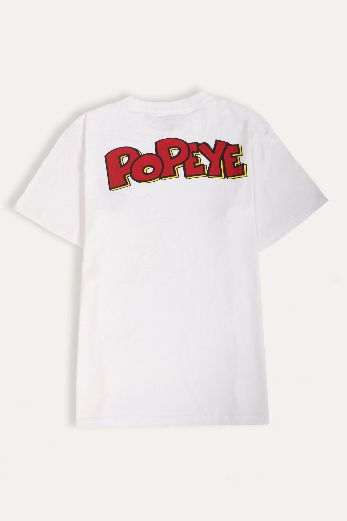 Graphic t-shirt featuring half sleeves, round neck and Popeye graphic emblem print details