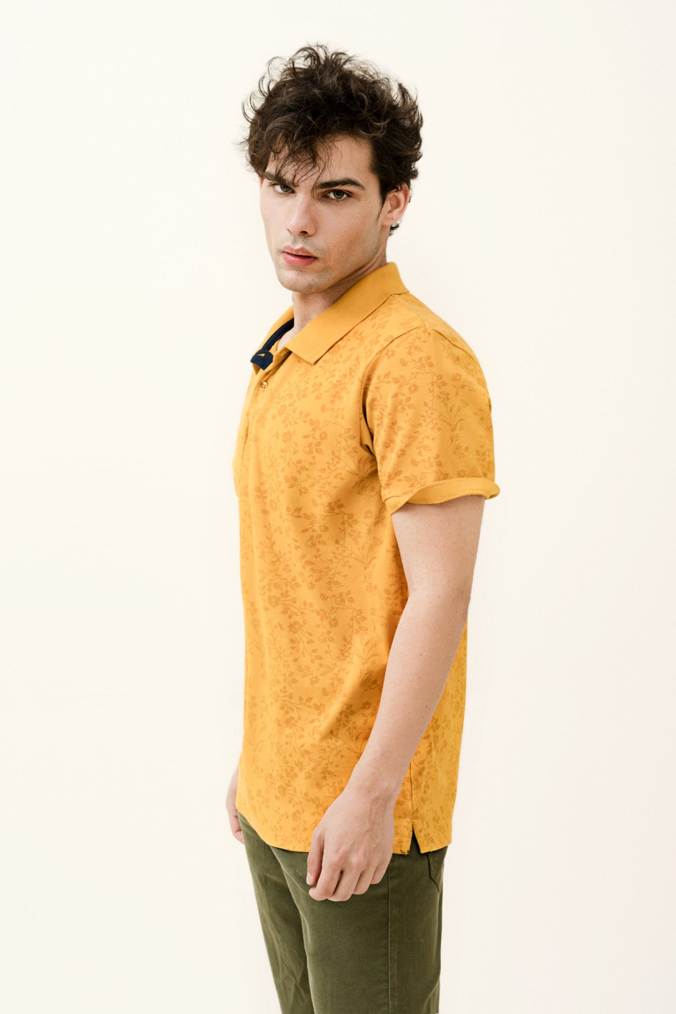 Buttoned Collar Polo shirt with half sleeves and printed design\