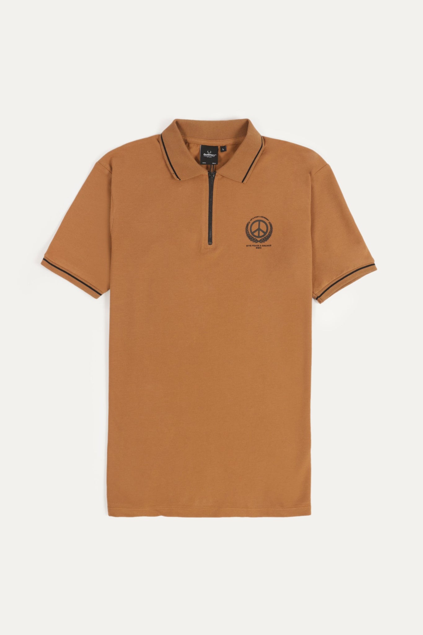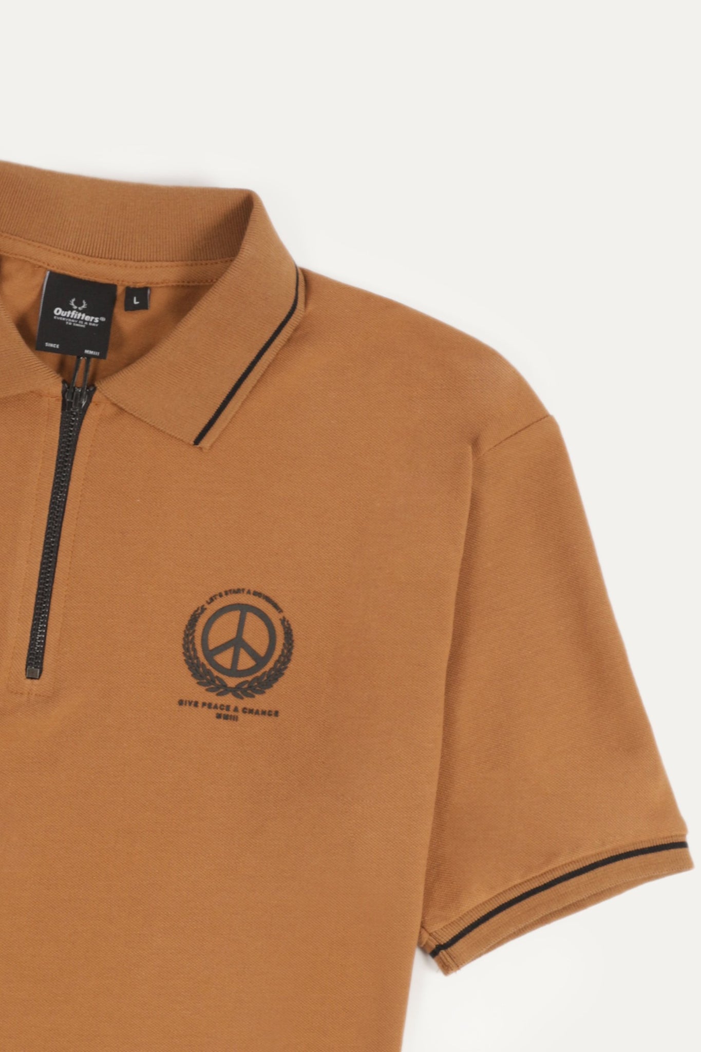 Polo shirt with zipper collar, half sleeves, logo design front and plain back