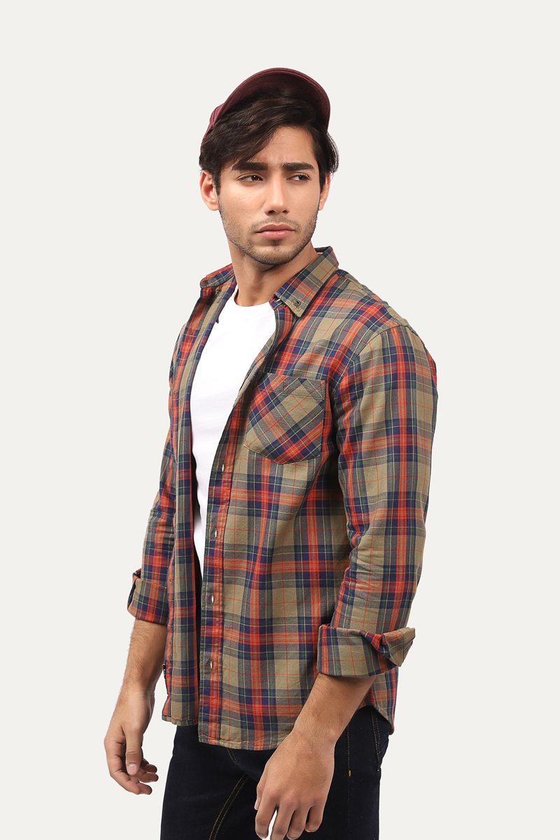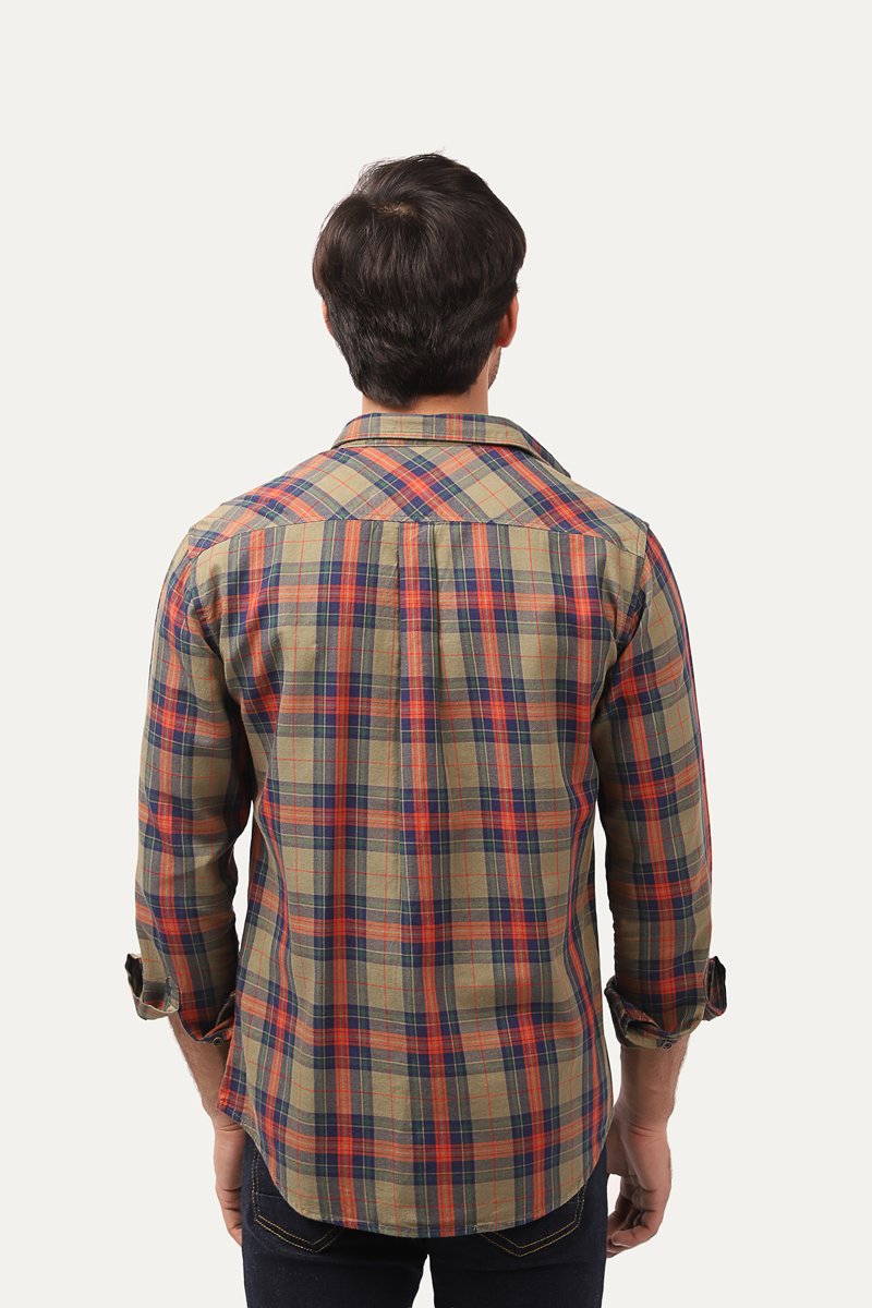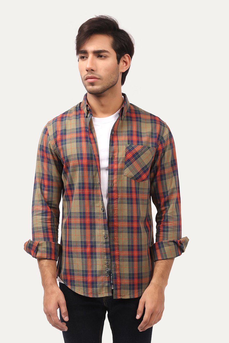 Button-up shirt featuring Full sleeves, classic collar and contrast stripe design
