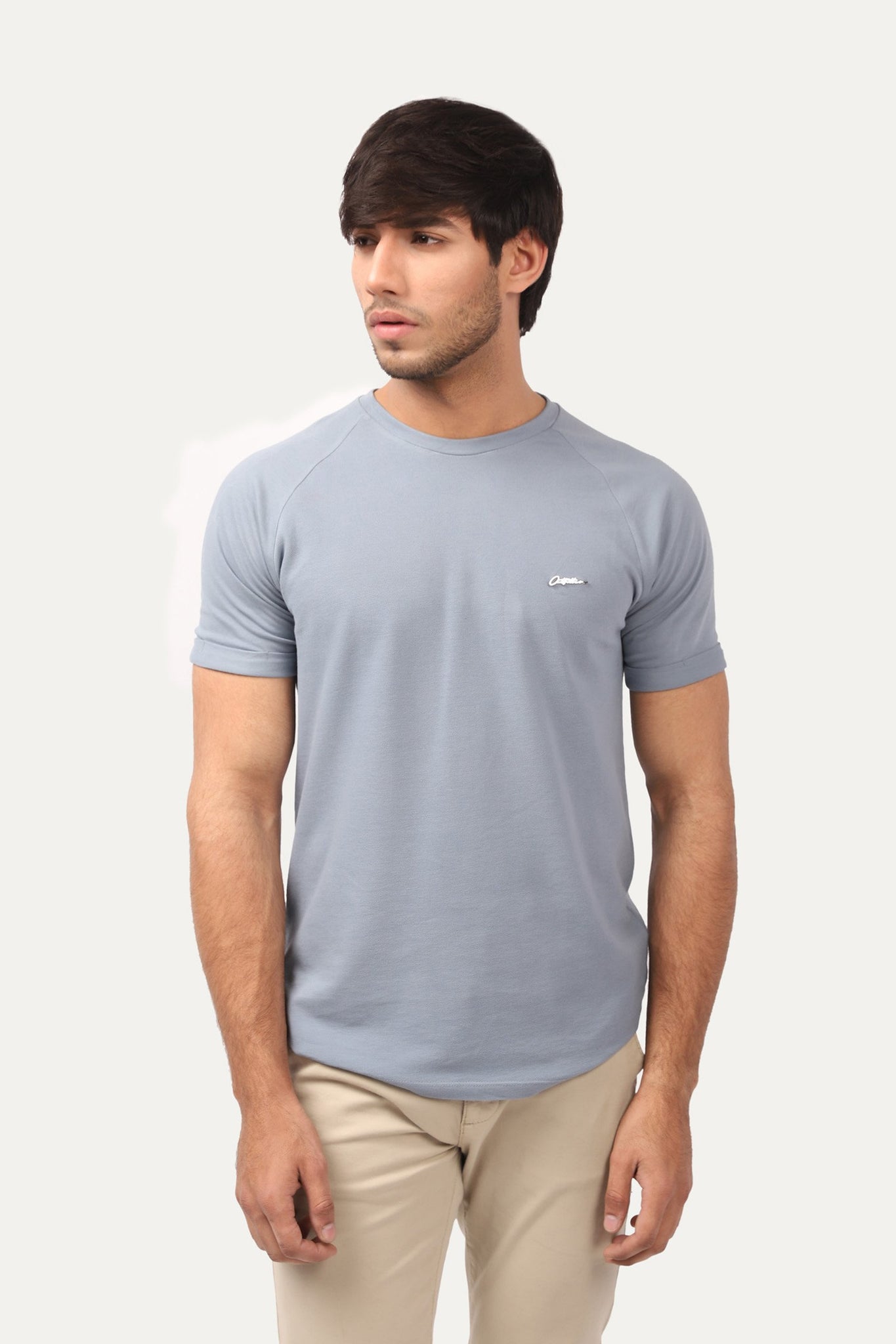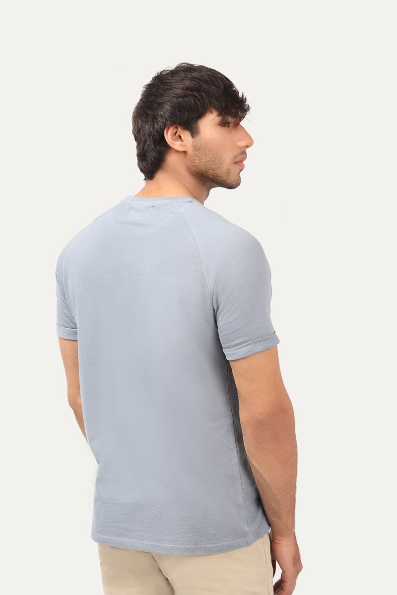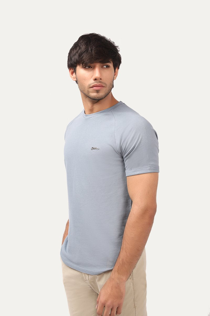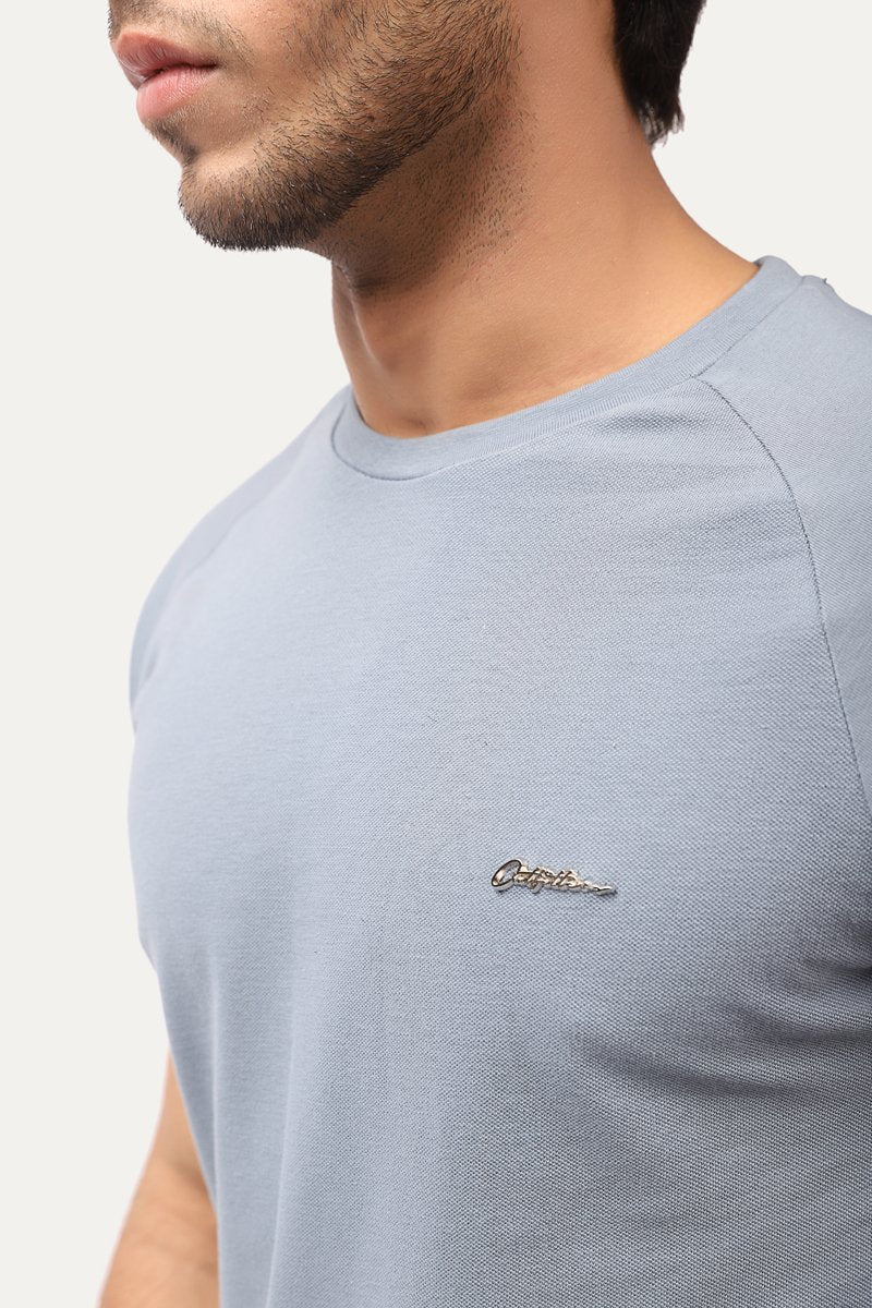 Round neck t-shirt with half sleeves and metallic logo details