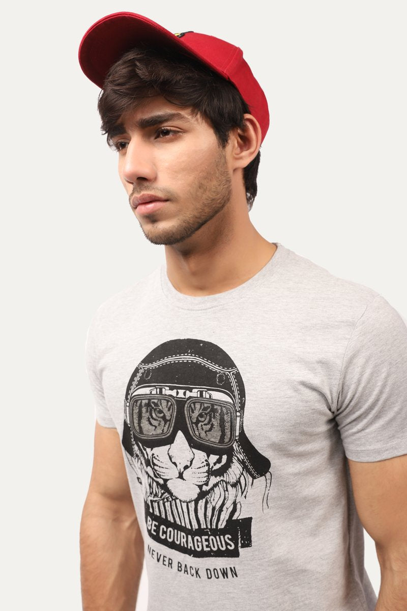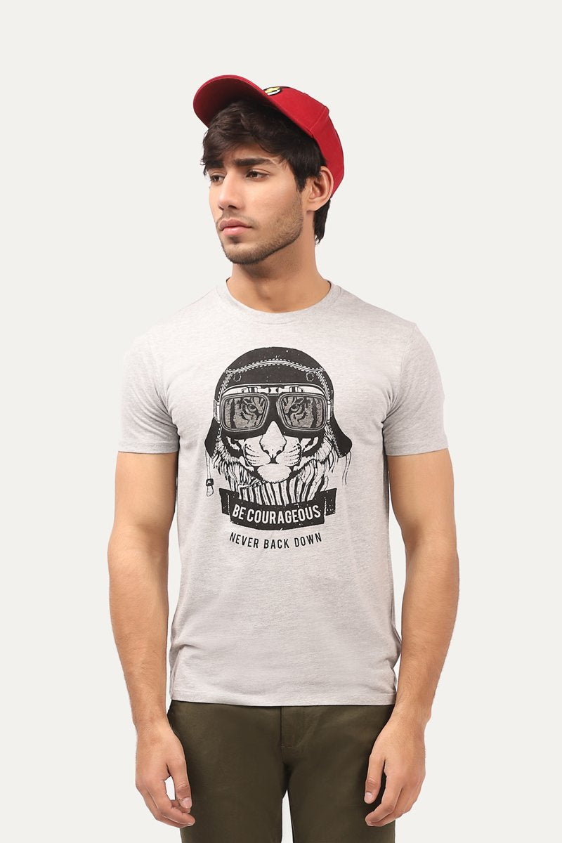 Graphic t-shirt featuring half sleeves, round neck and graphic print on front