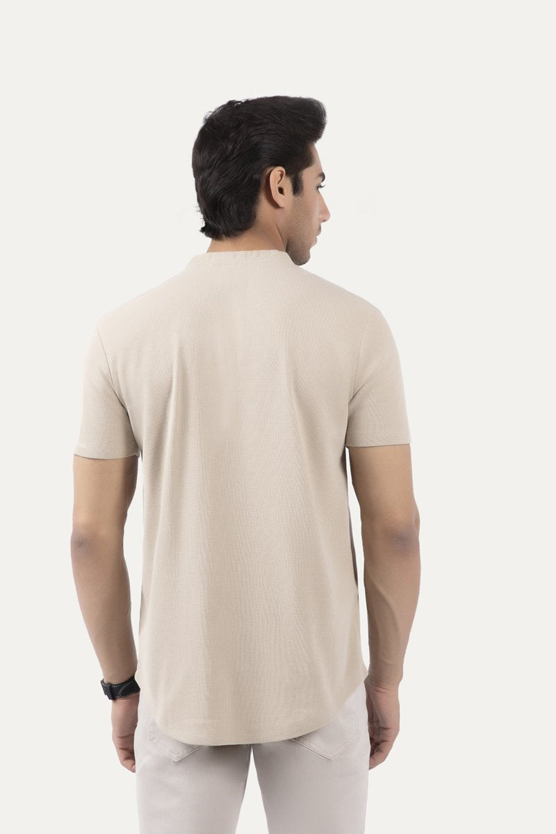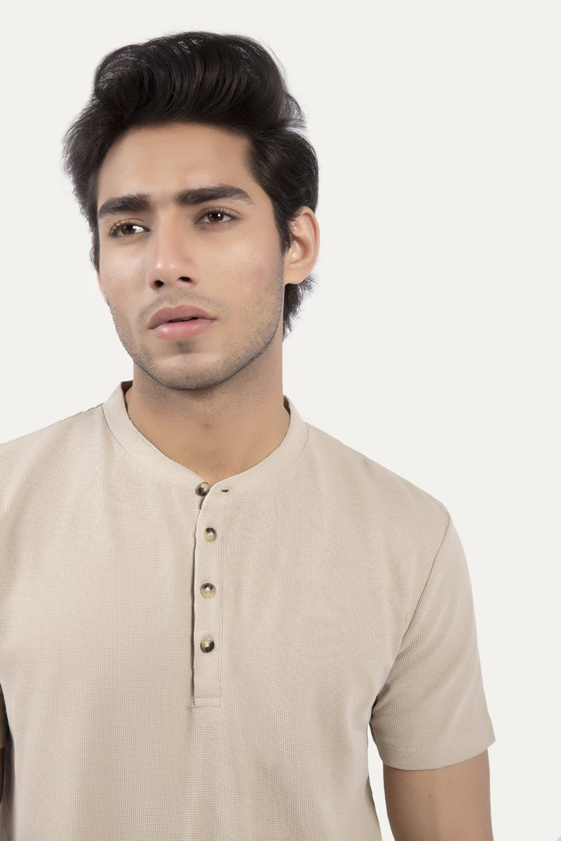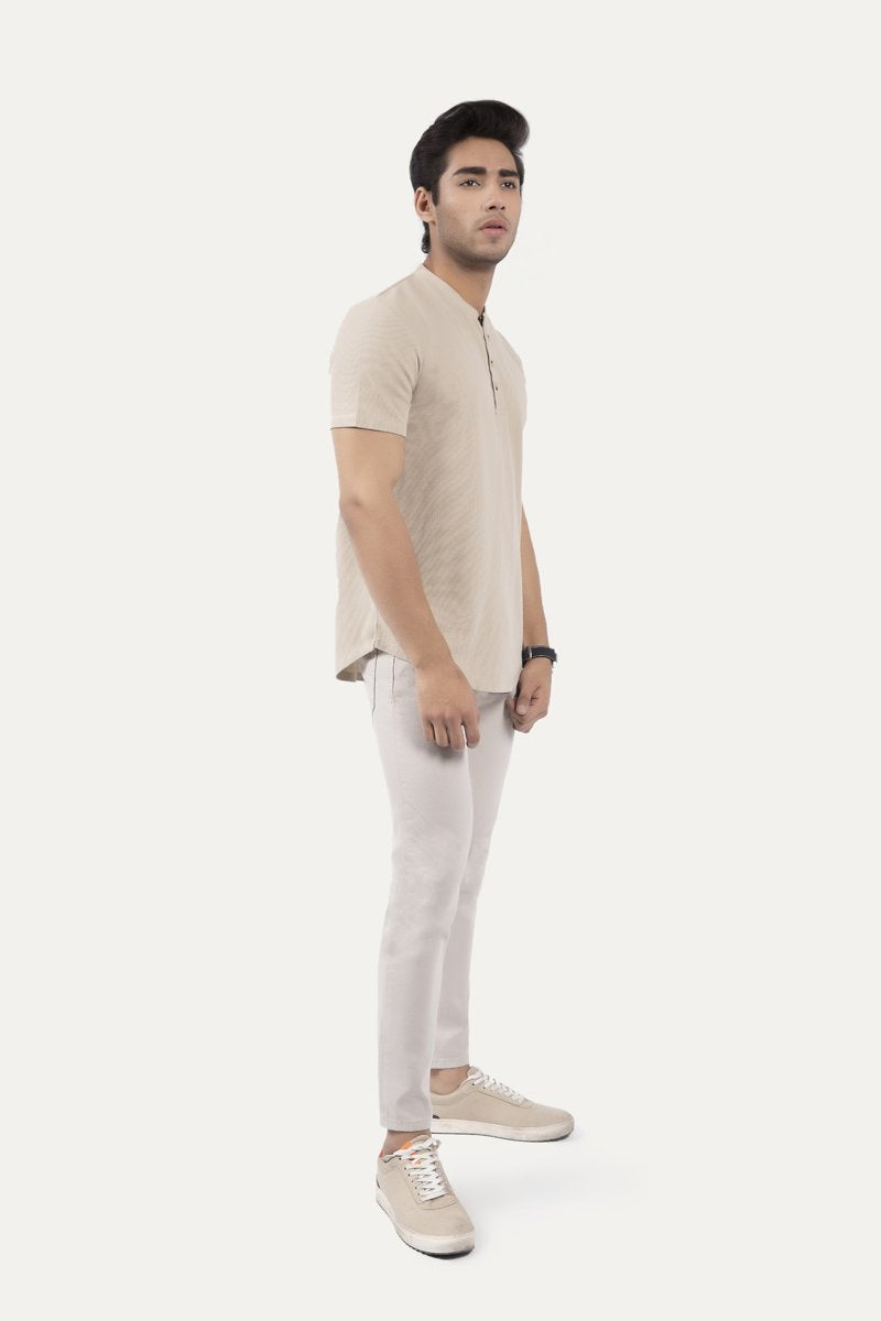Half sleeve shirt with buttoned front, classic buttoned neck and plain back