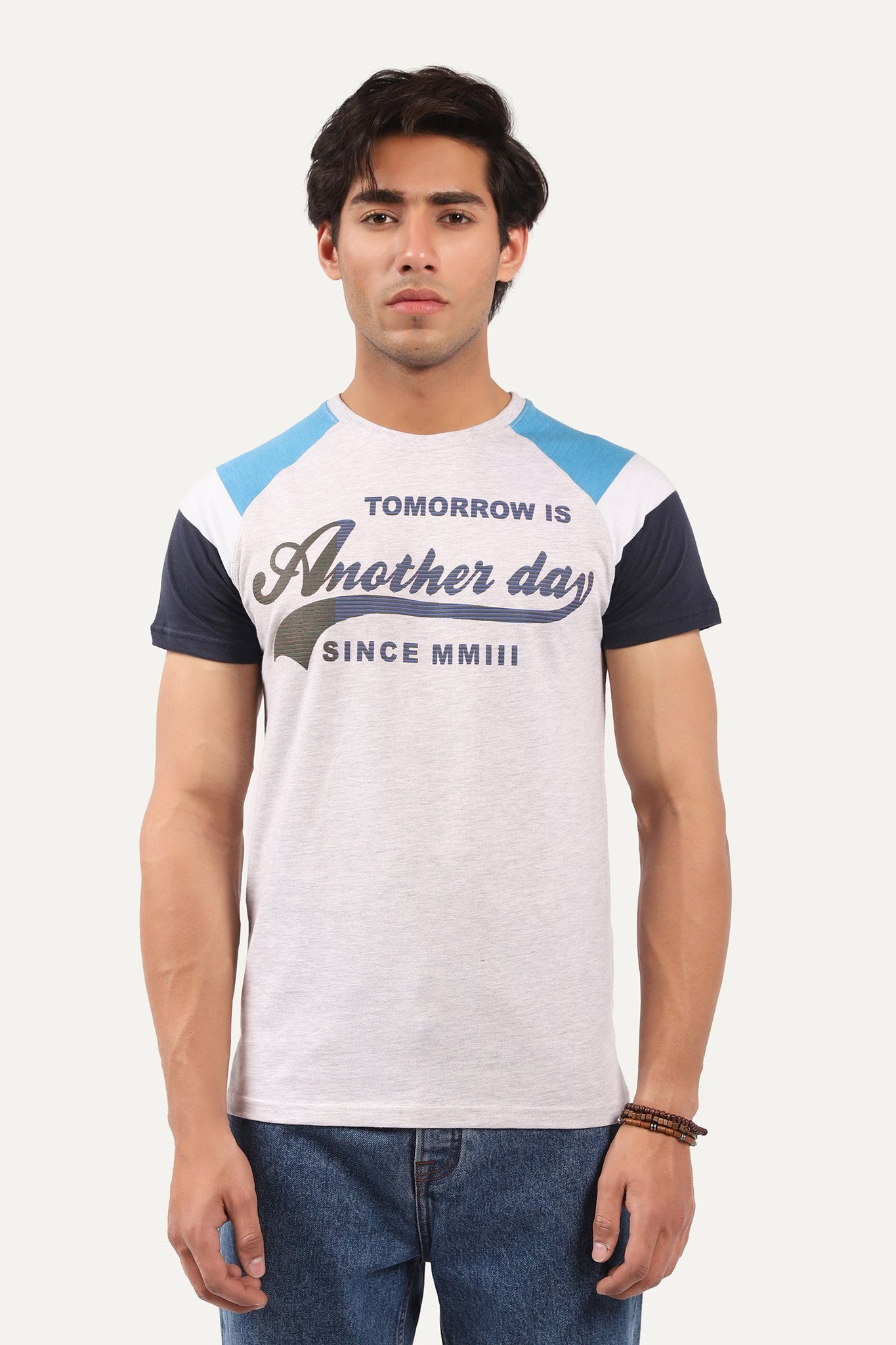 T-shirt featuring half sleeves, round neck and printed "Another Day" text on the chest
