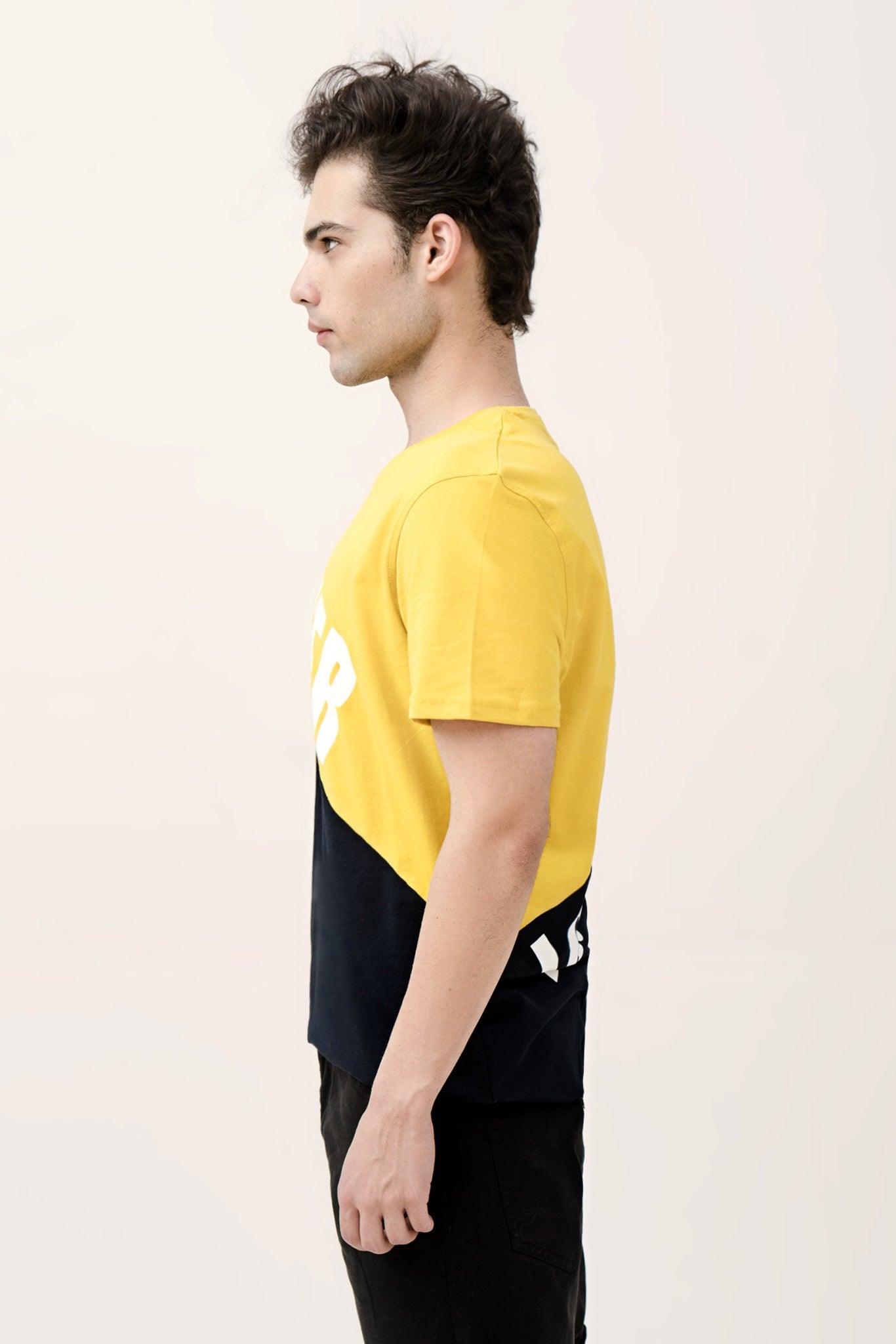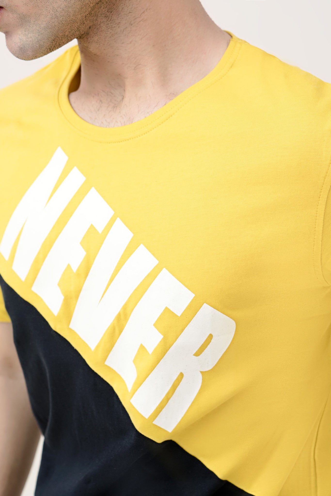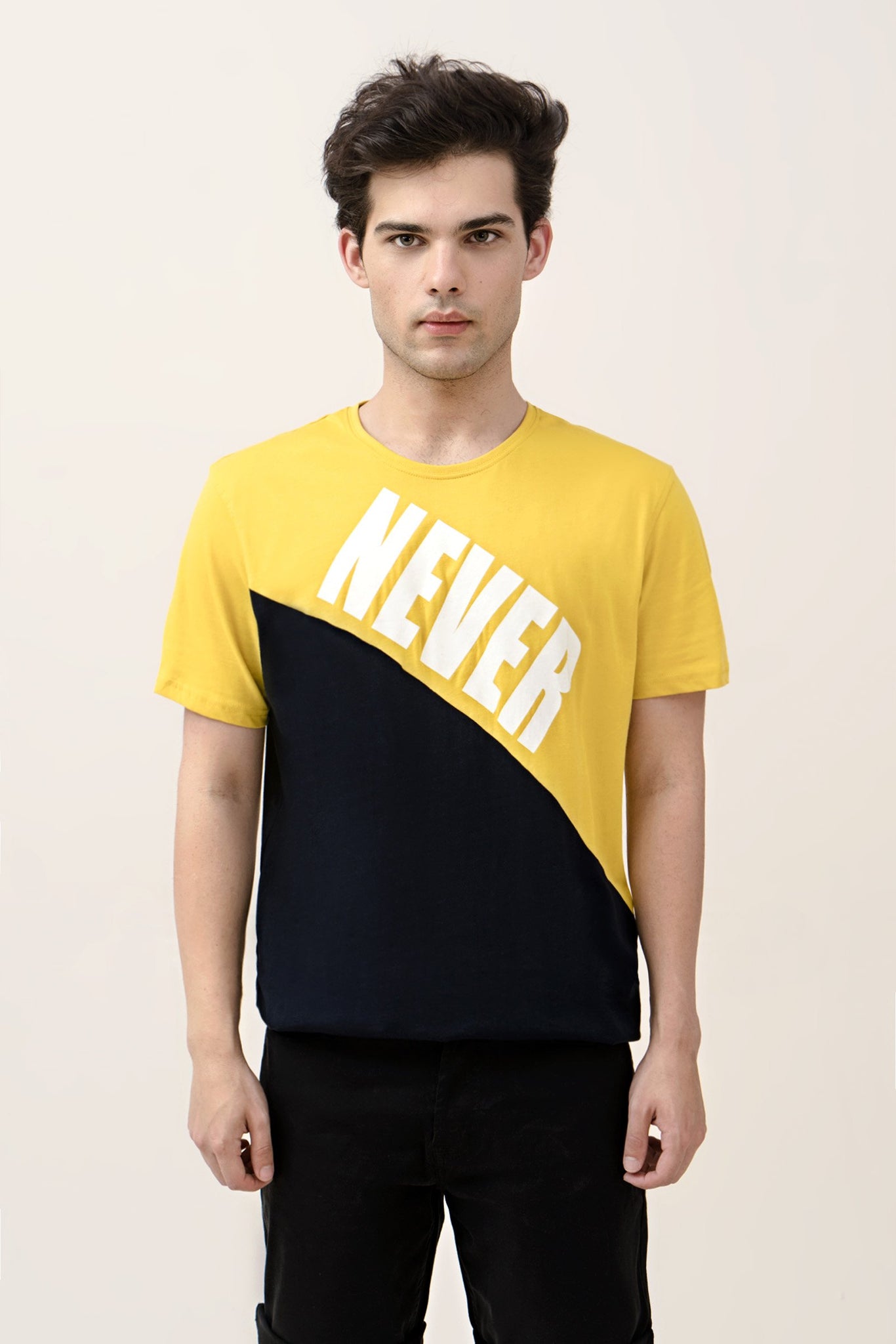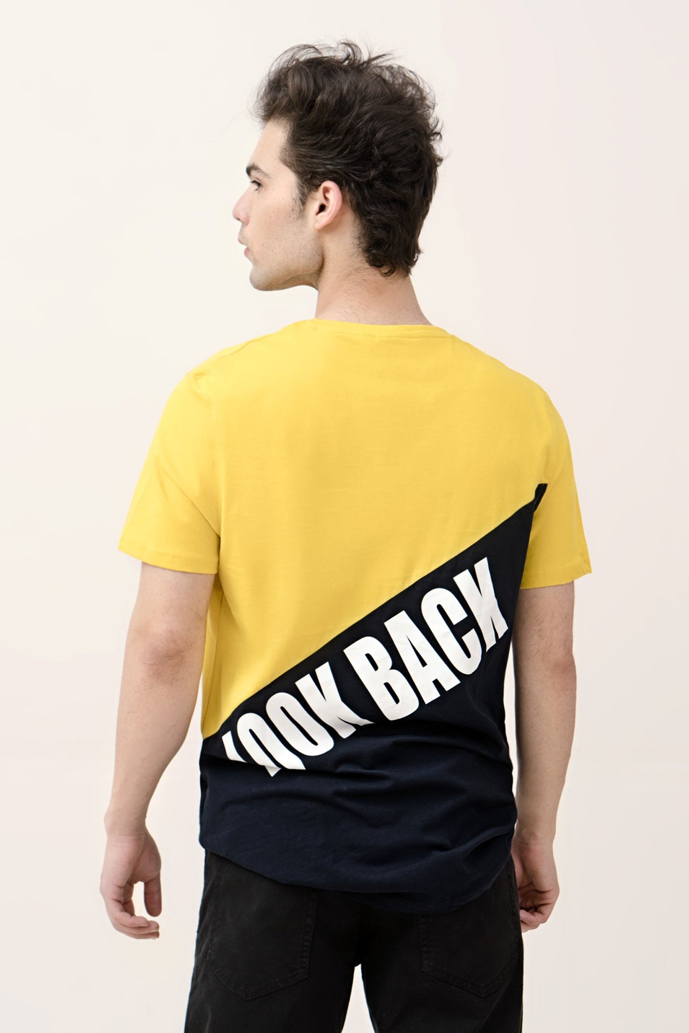 Half sleeve t-shirt with round neck, dual colored and never look back printed design