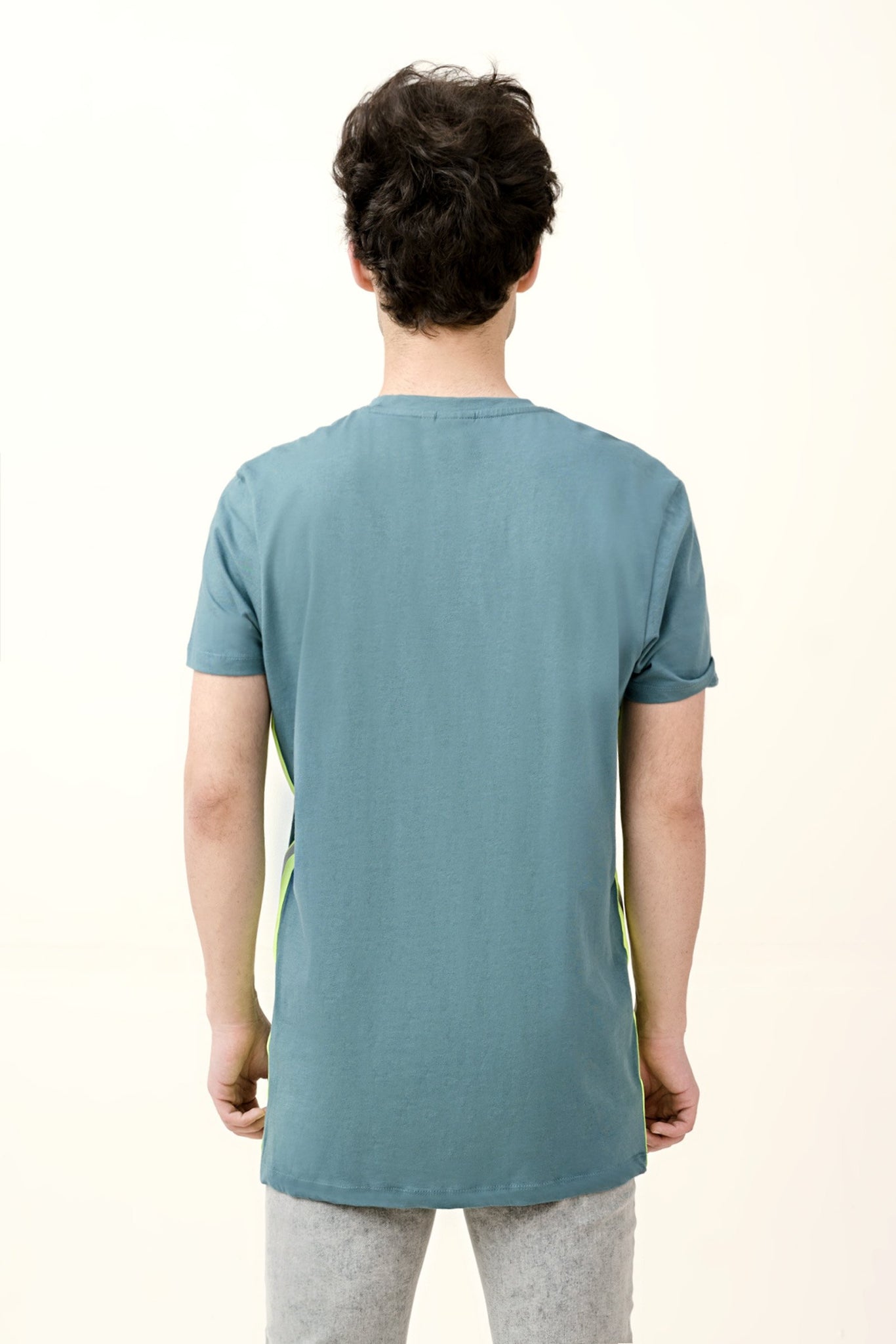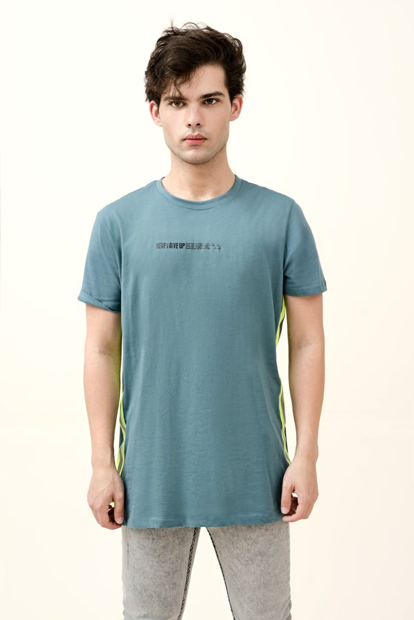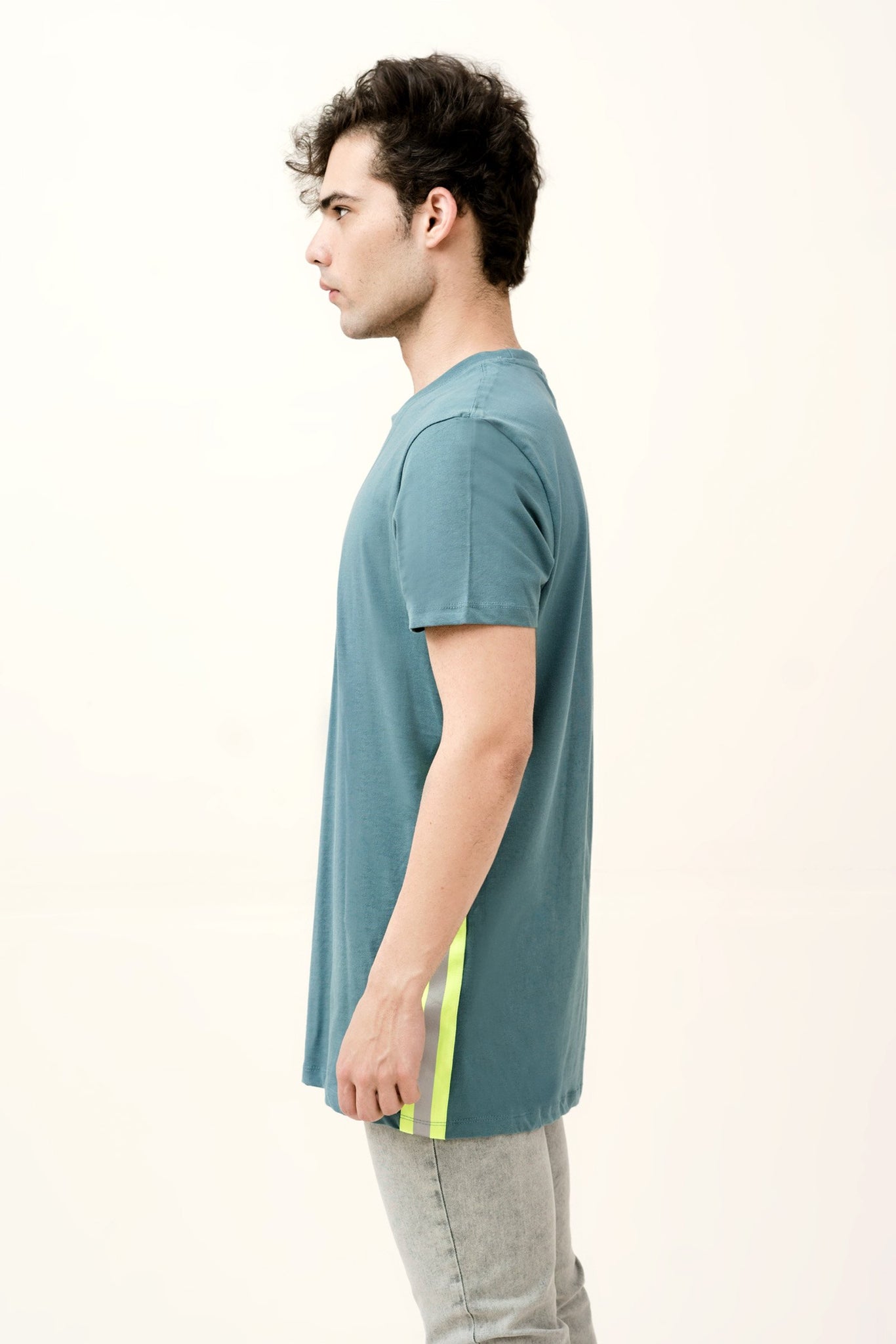 Side stripe T-shirt featuring half sleeves and plain round neck