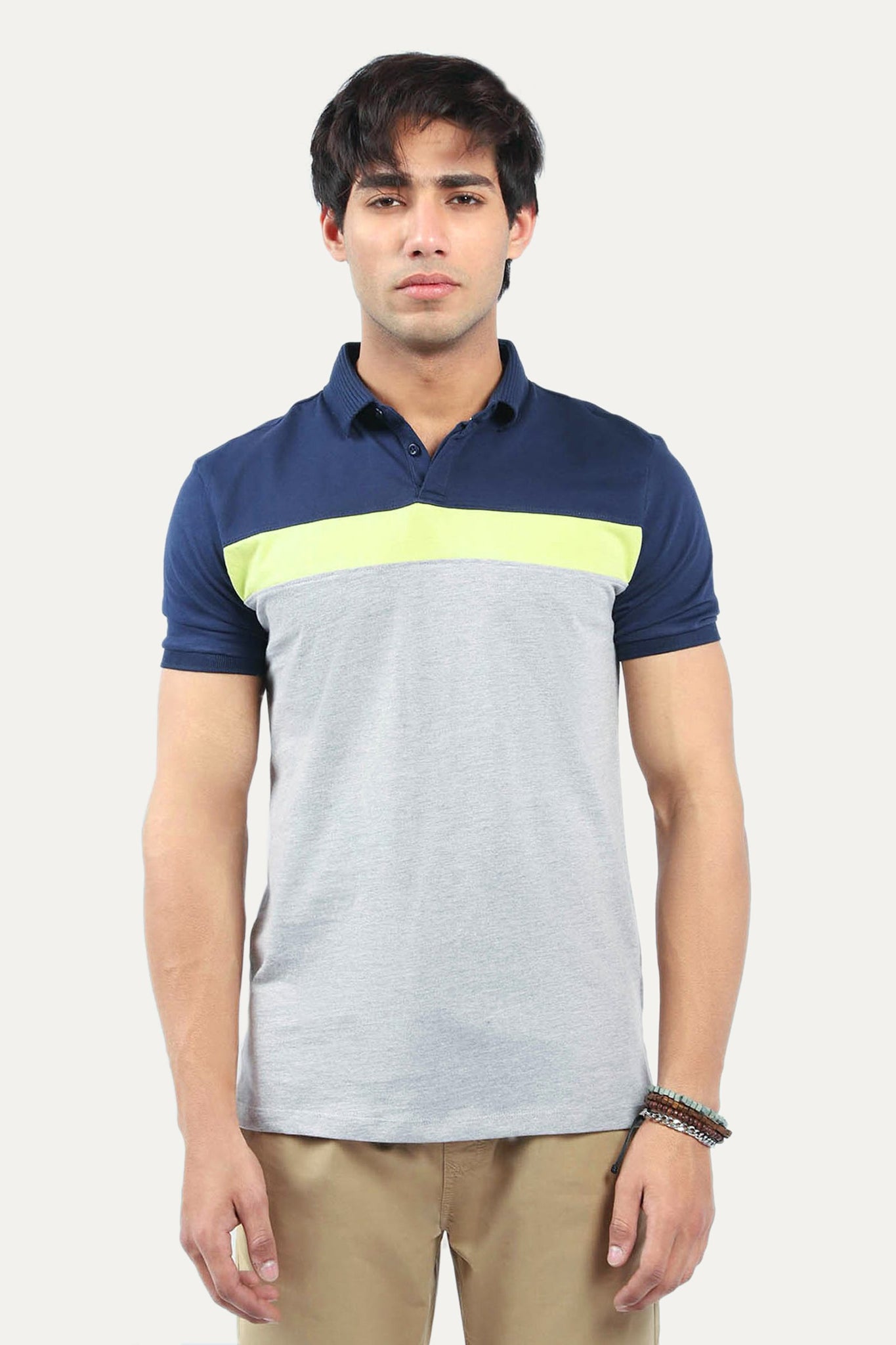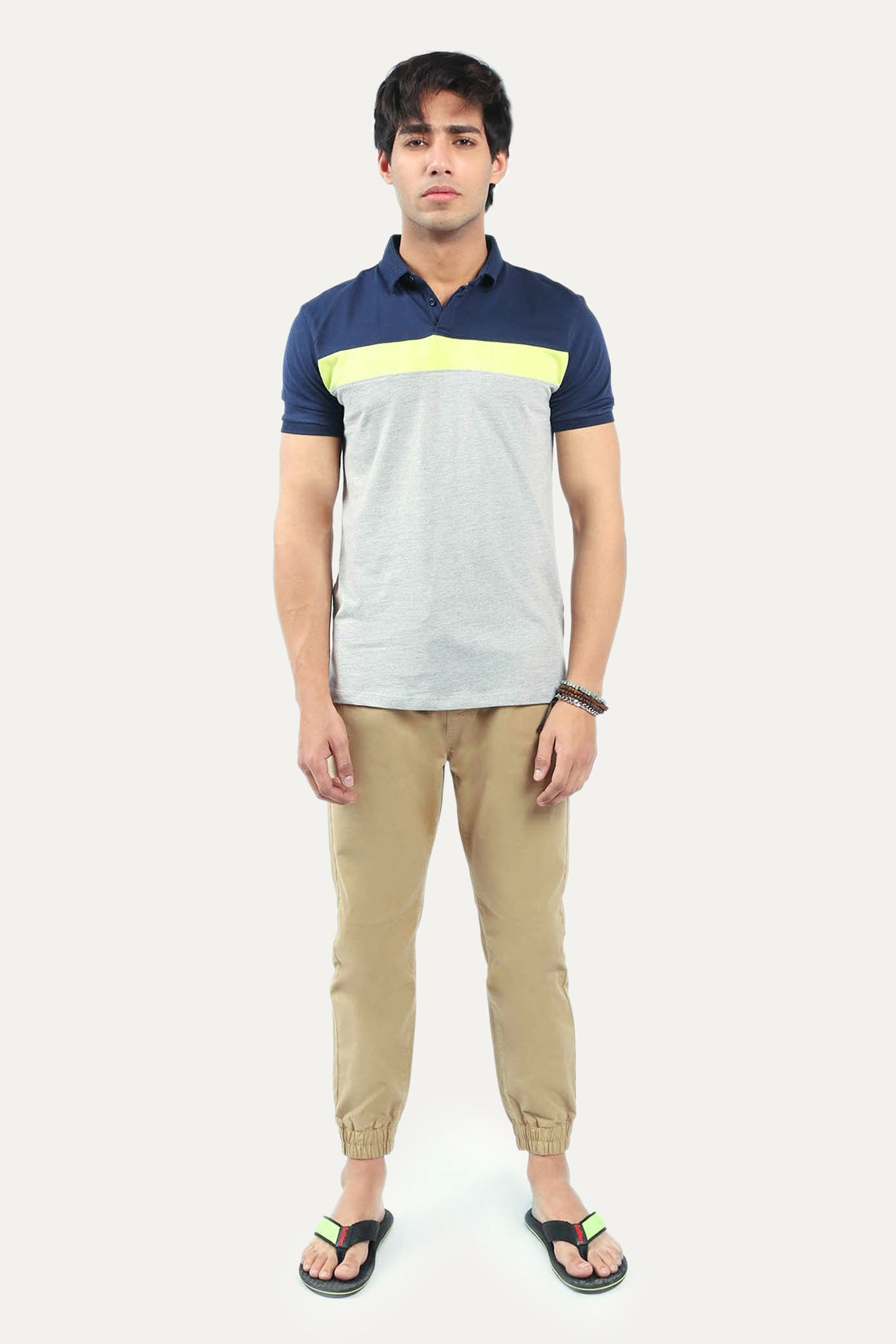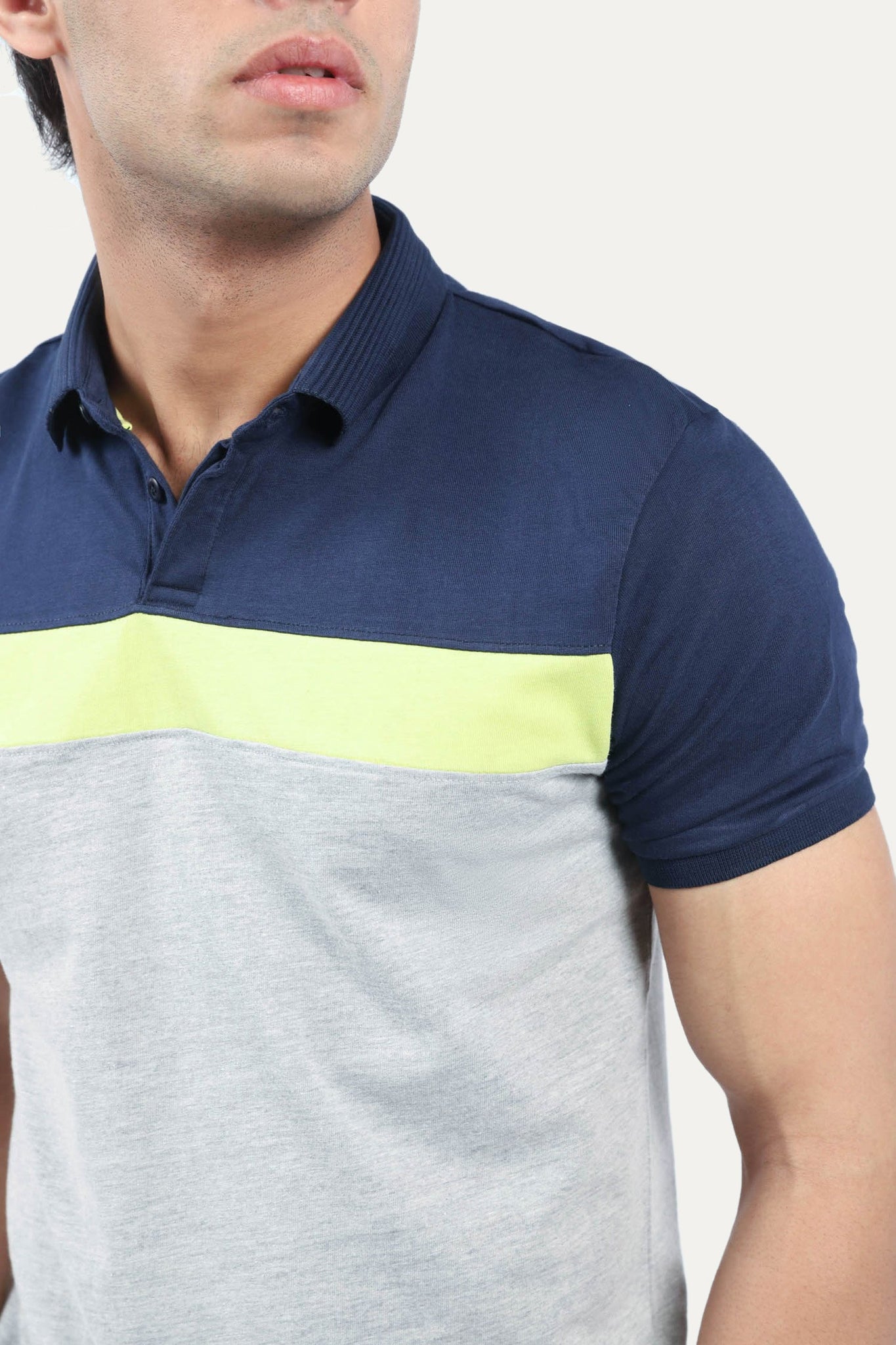 Buttoned Collar Polo Shirt with half sleeves, round neck having three shades
