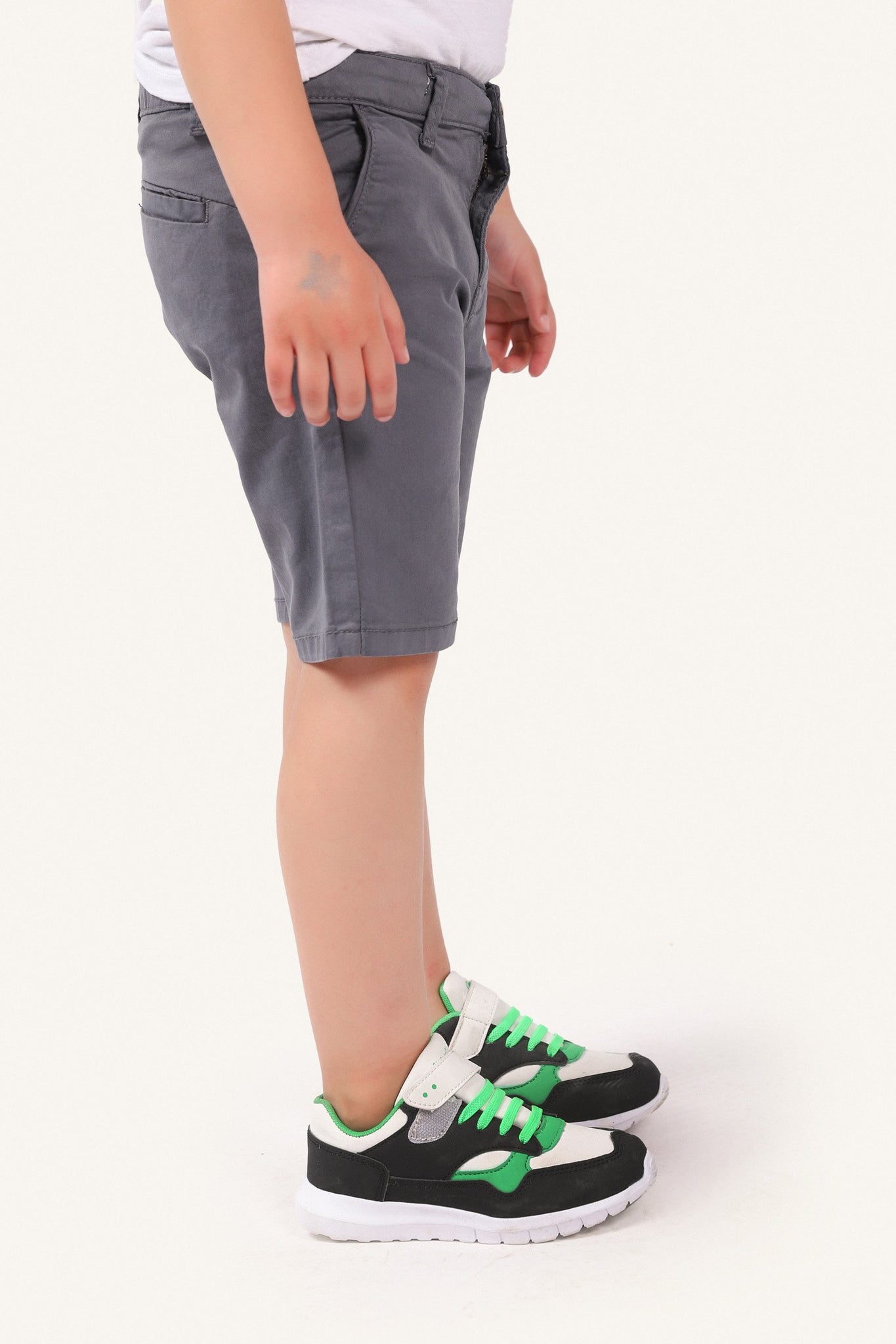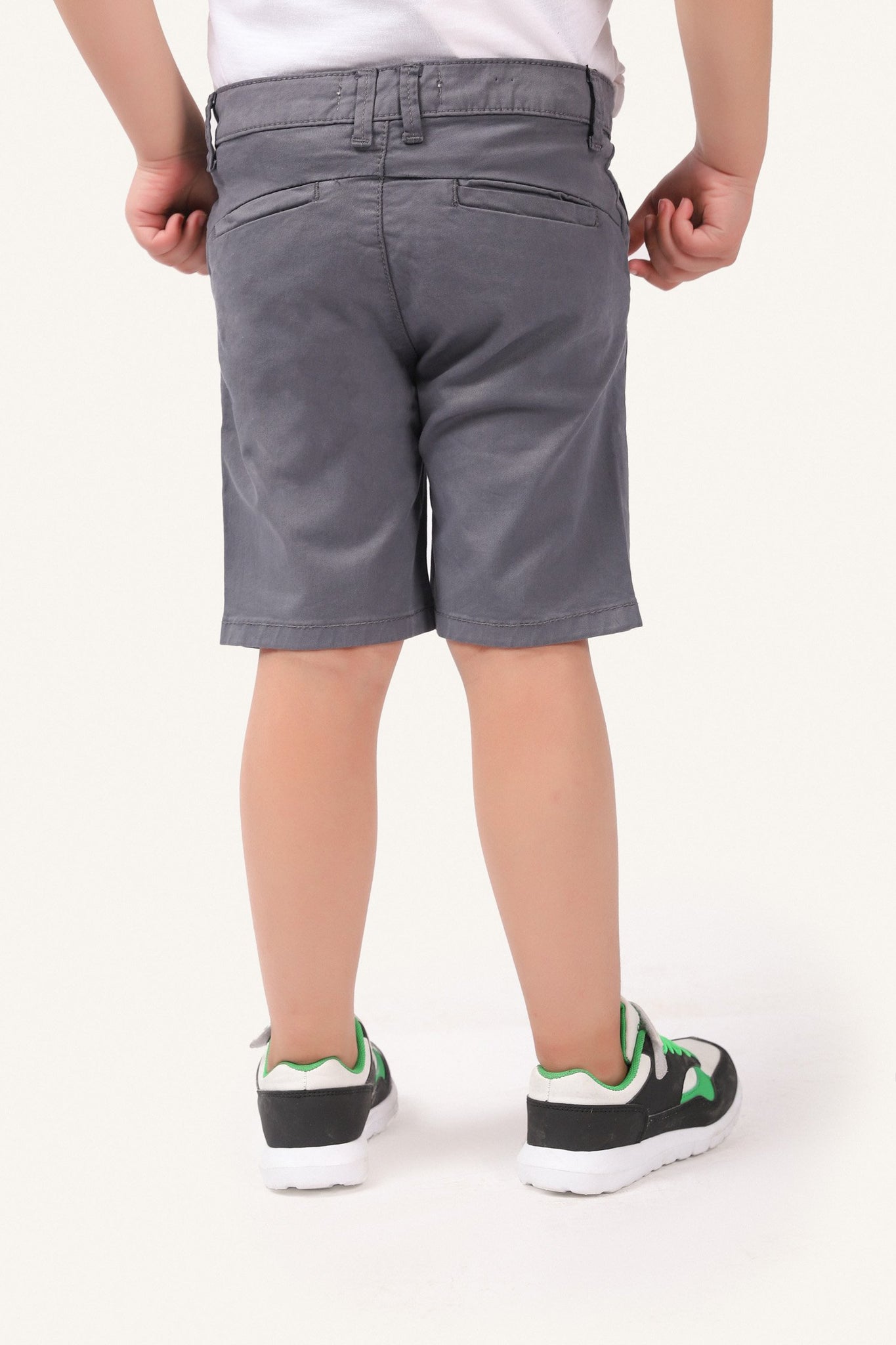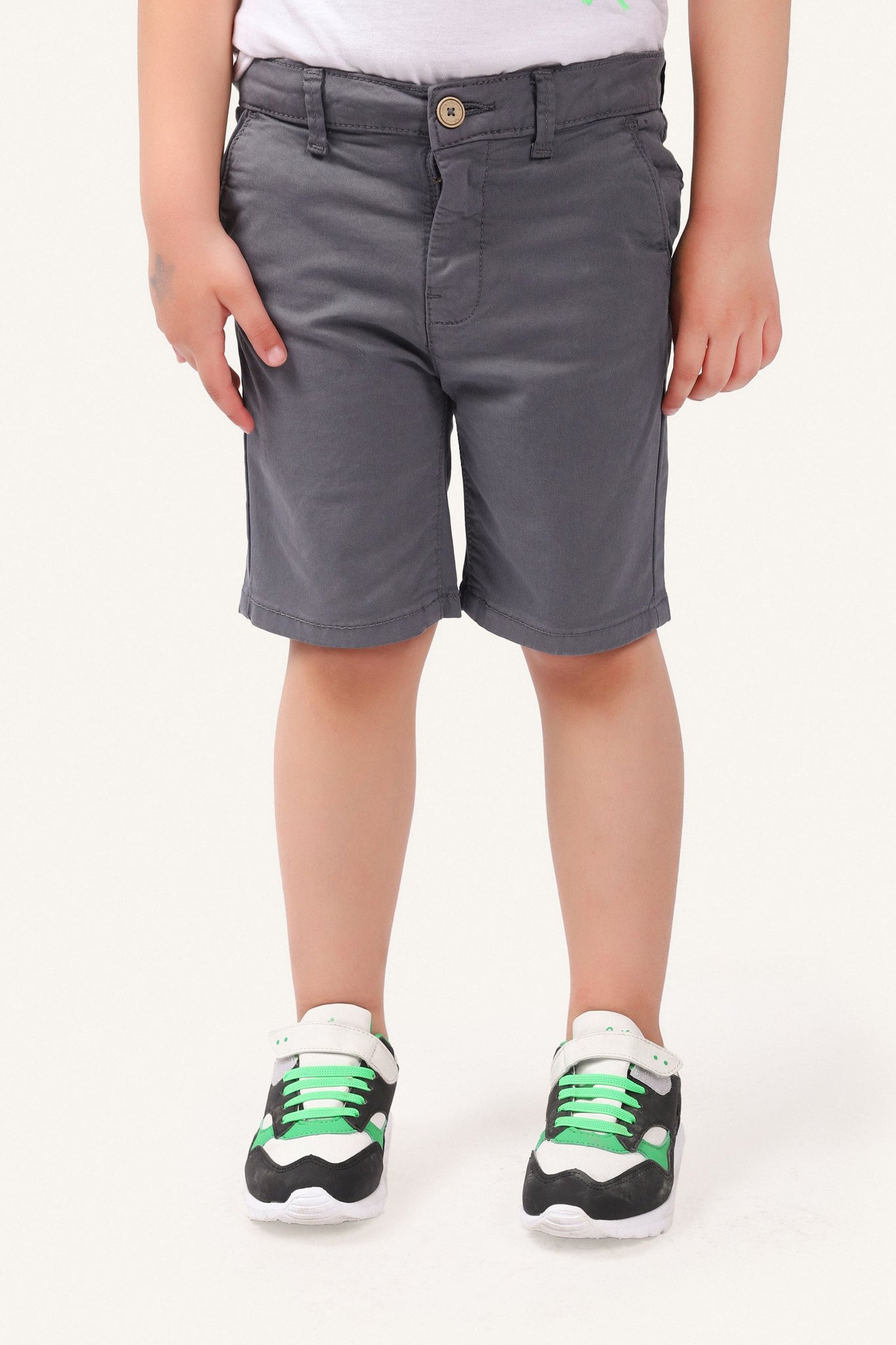 Basic shorts with belt loops, pockets, zip fly and one contrast button fastening