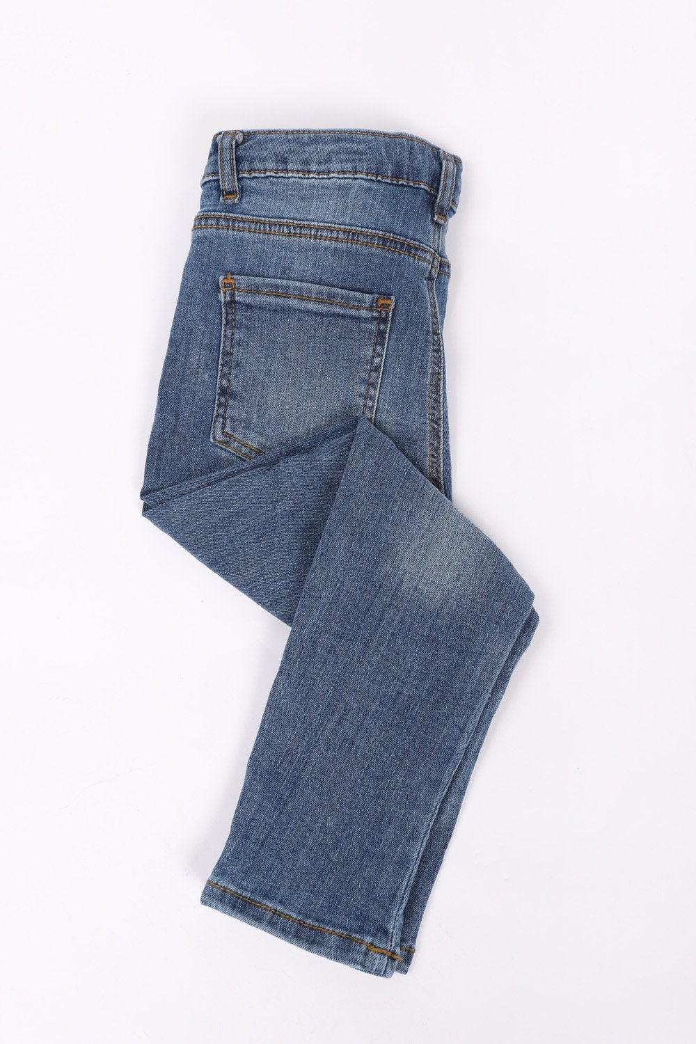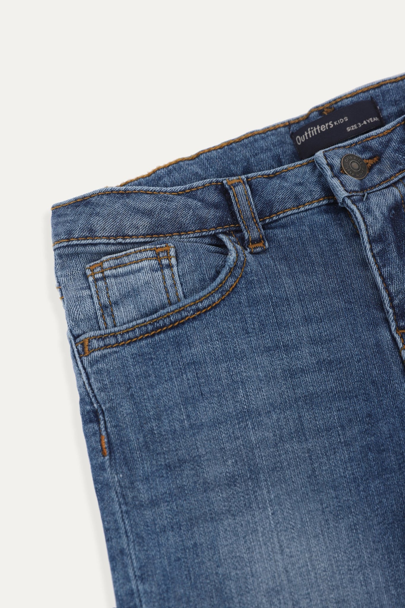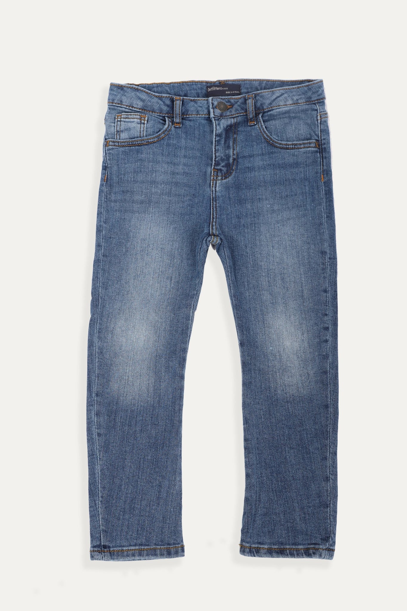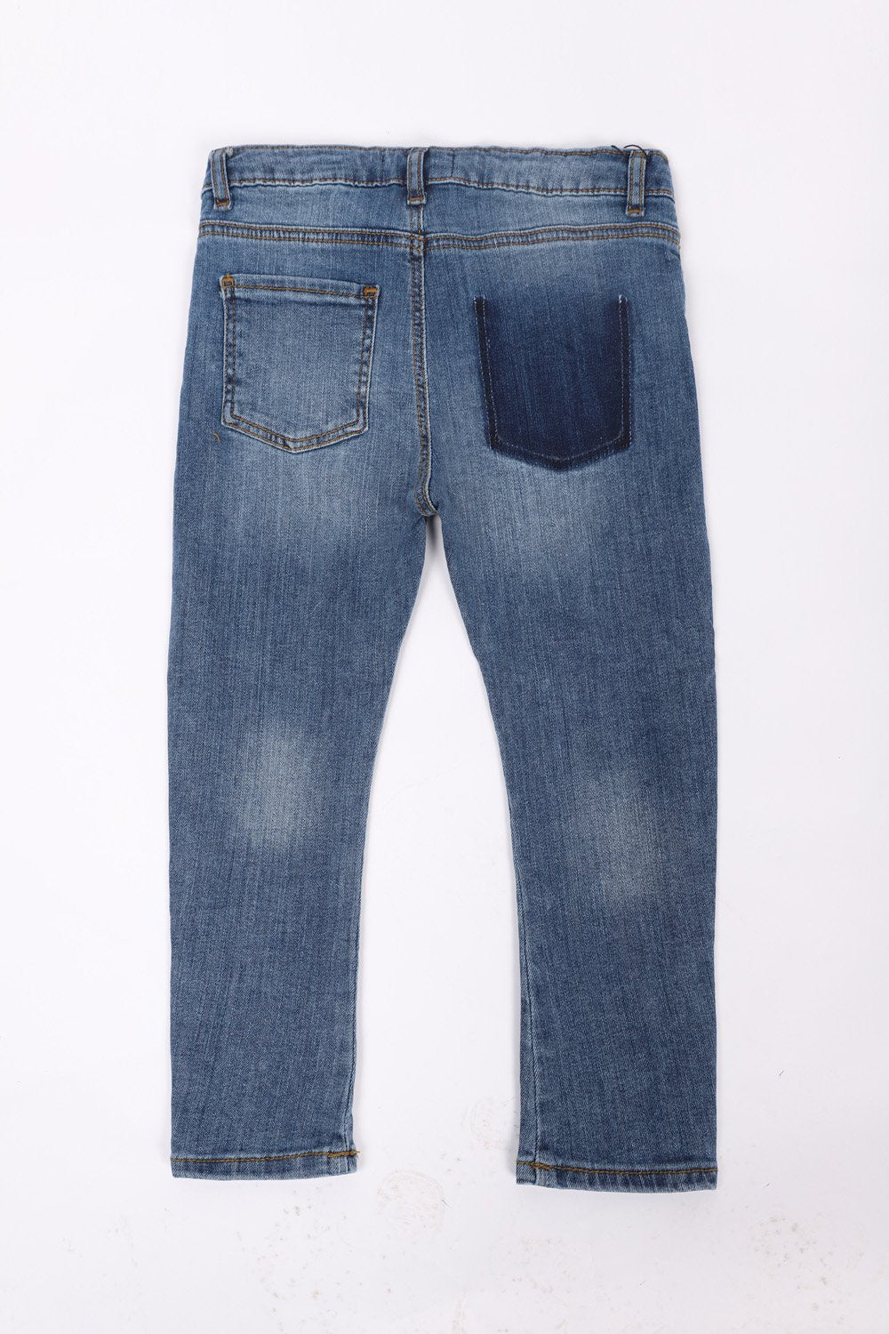 Contrast seam denim pants with four pockets, zip fly, one button fastening and a back pocket impression details