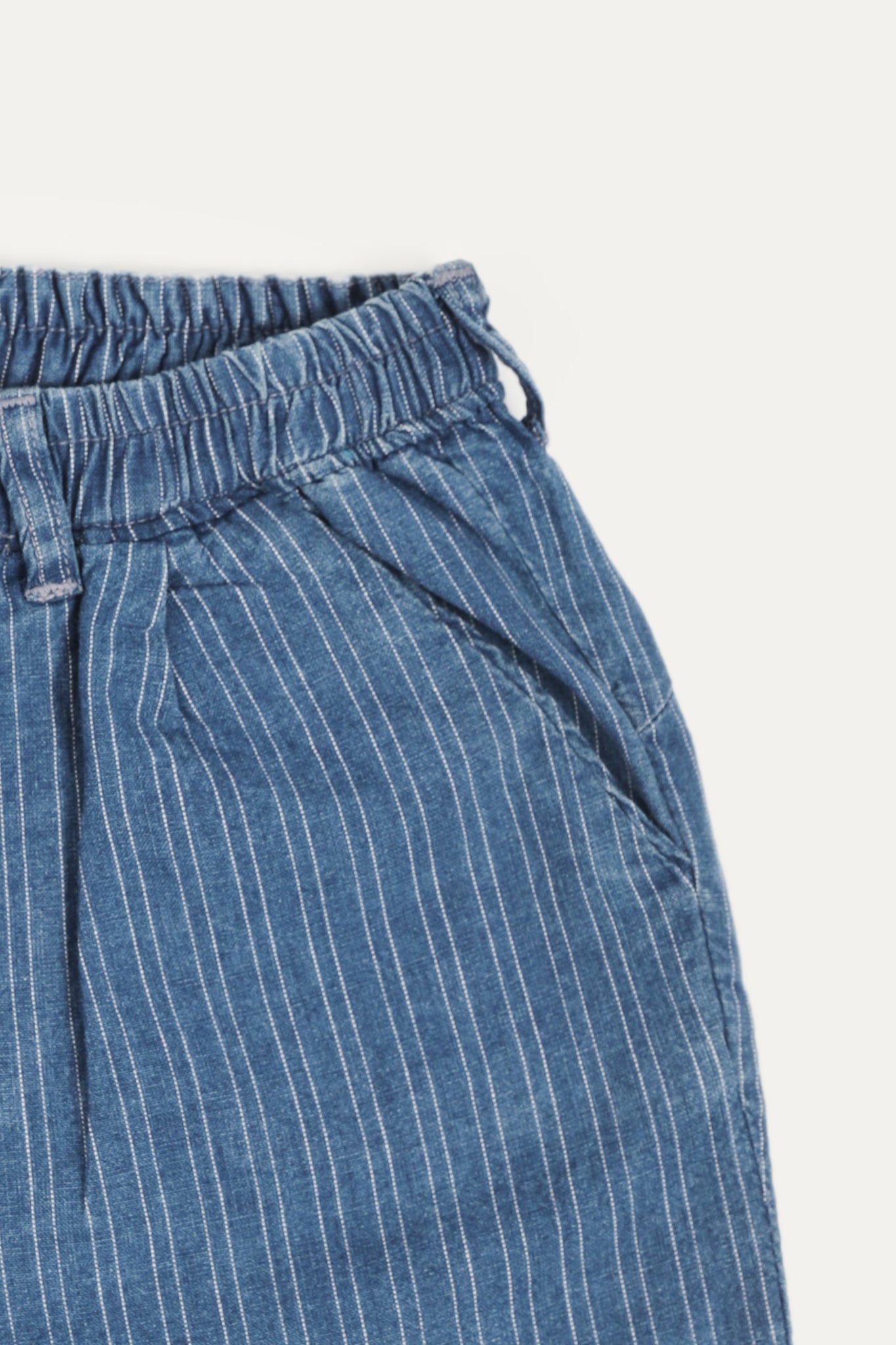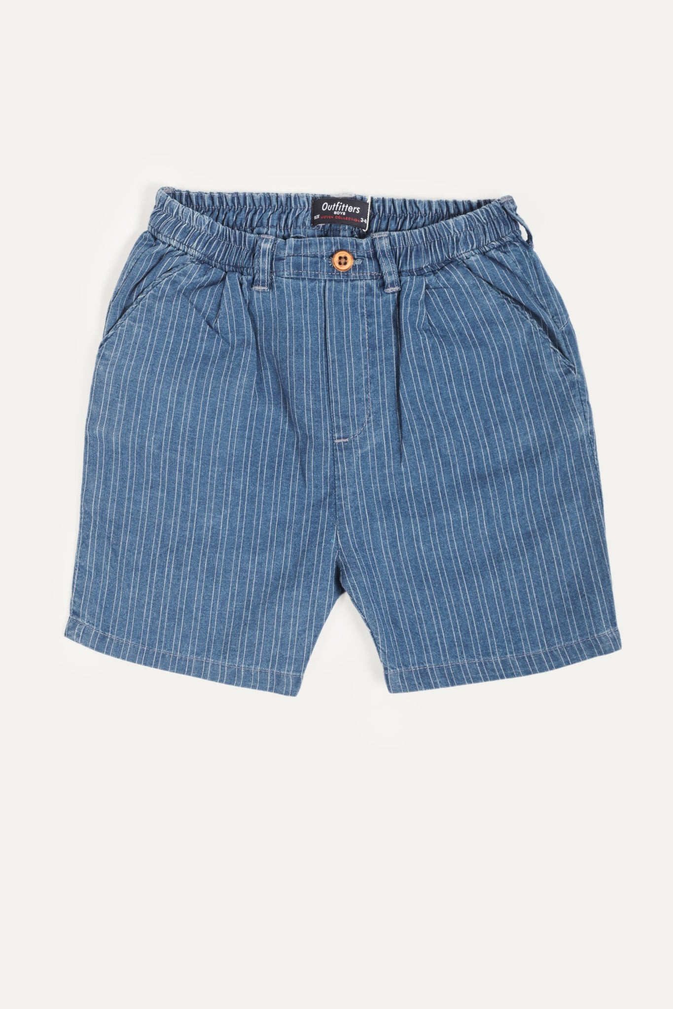 Lining print shorts with metallic front button, belt loop, side pockets, printed front and back