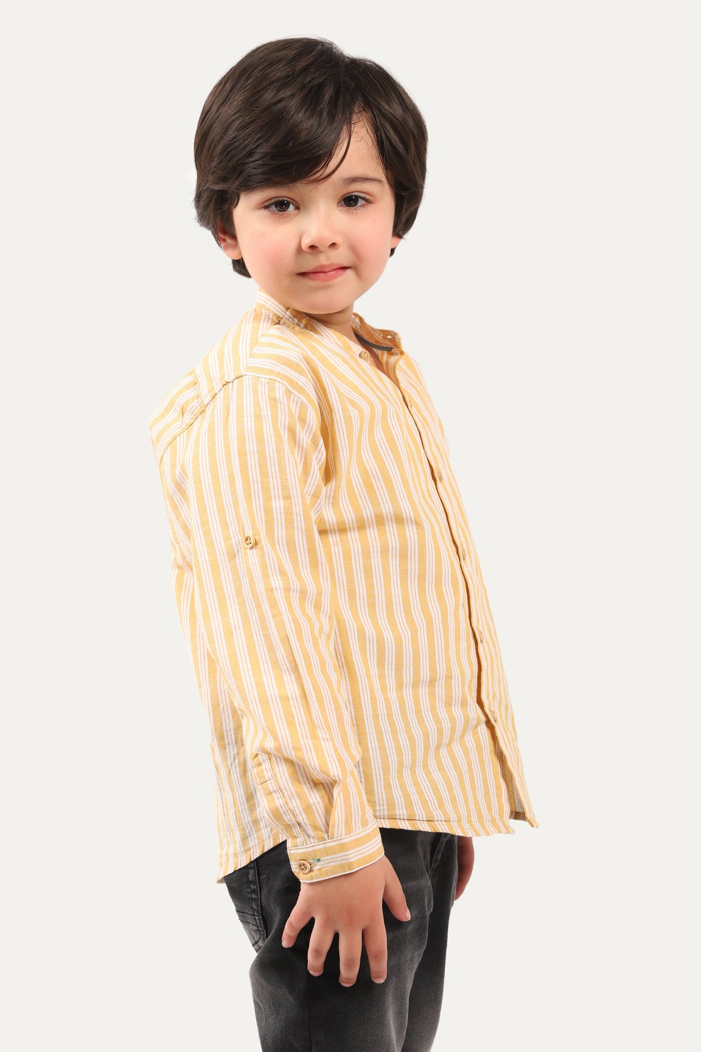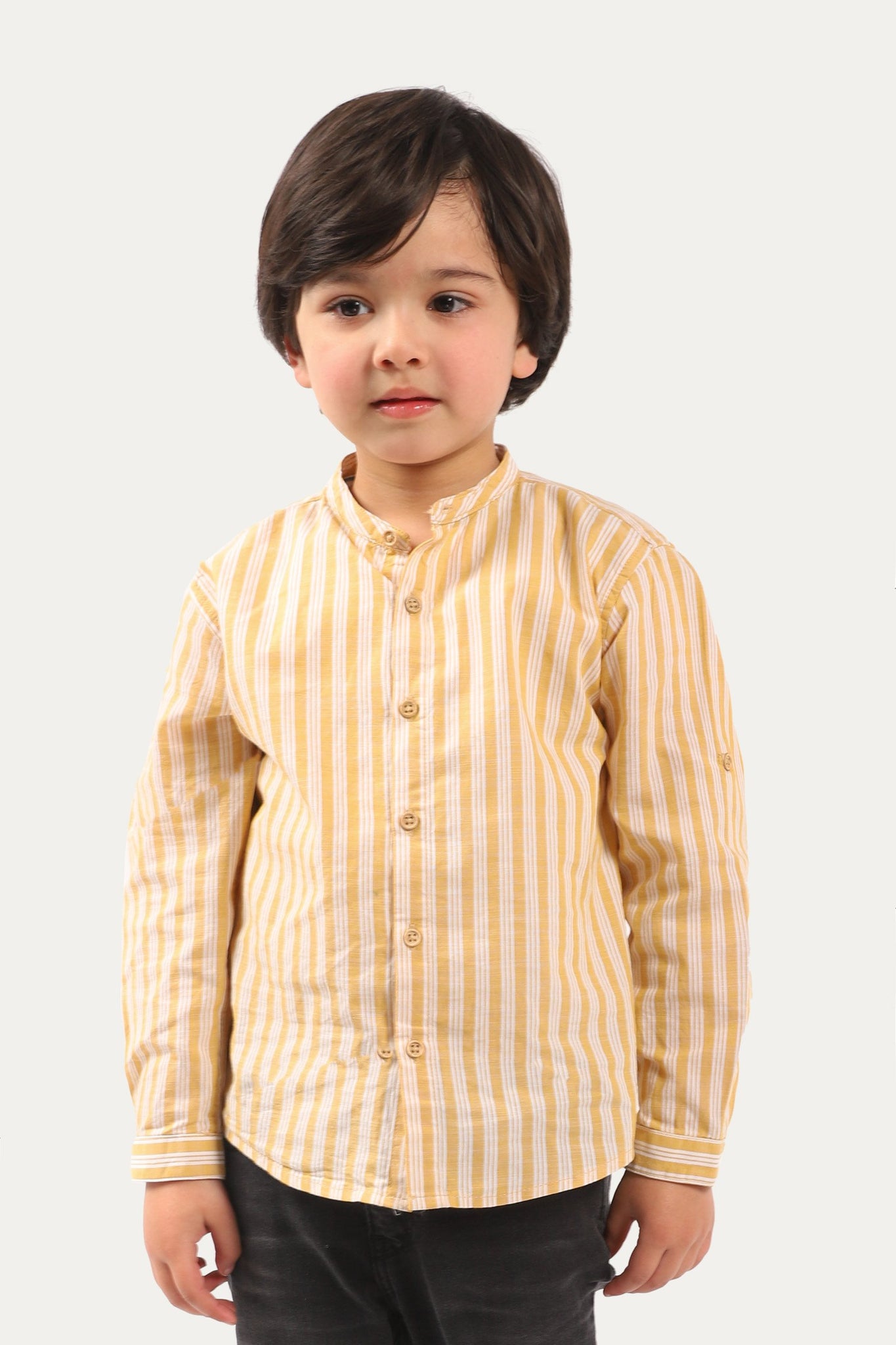 Henley collar shirt featuring full sleeves, button down front, buttoned cuffs, lining design and adjustable sleeves design