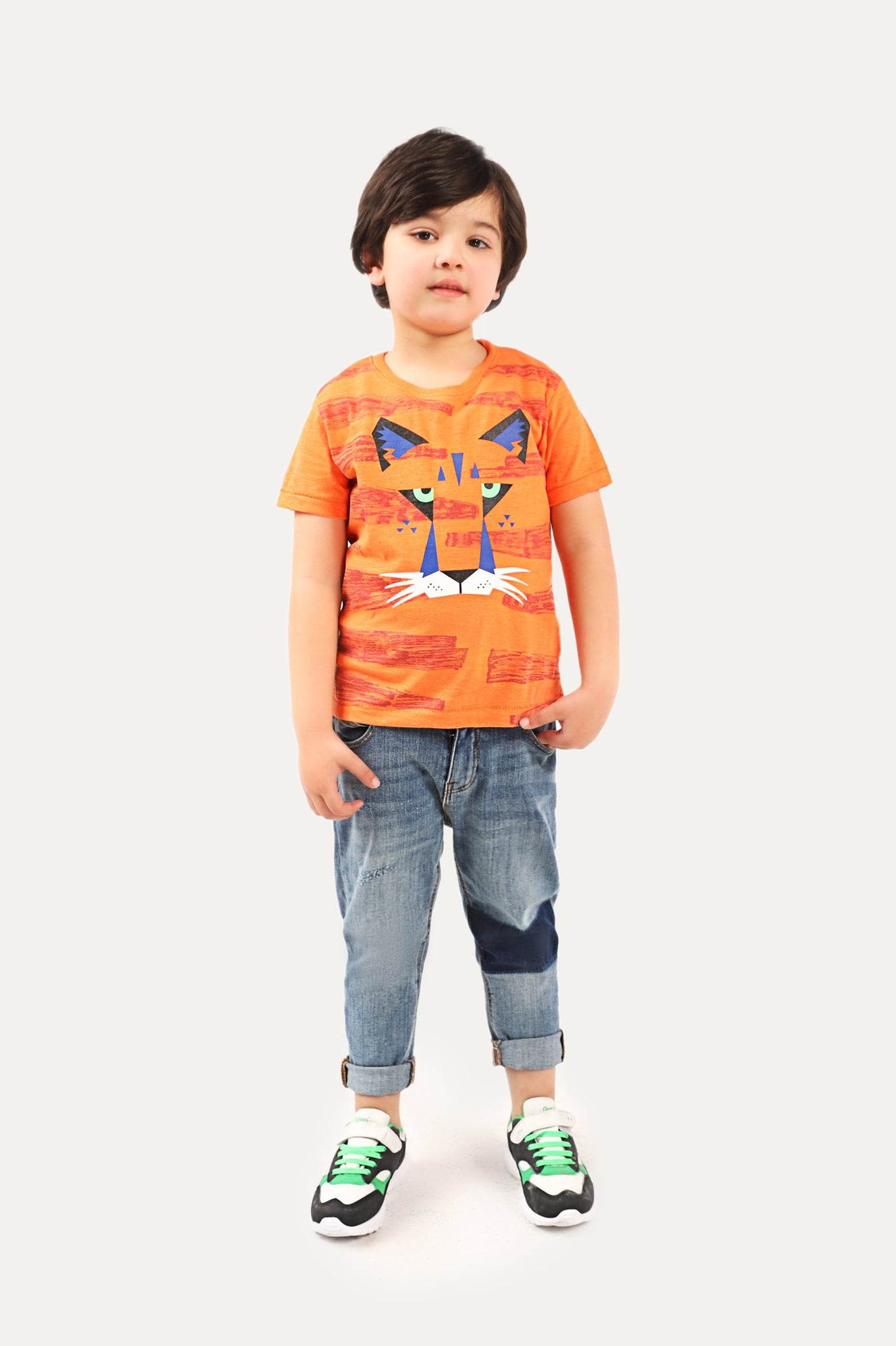 Sleeveless Round neck shirt with half sleeves and graphic print on front