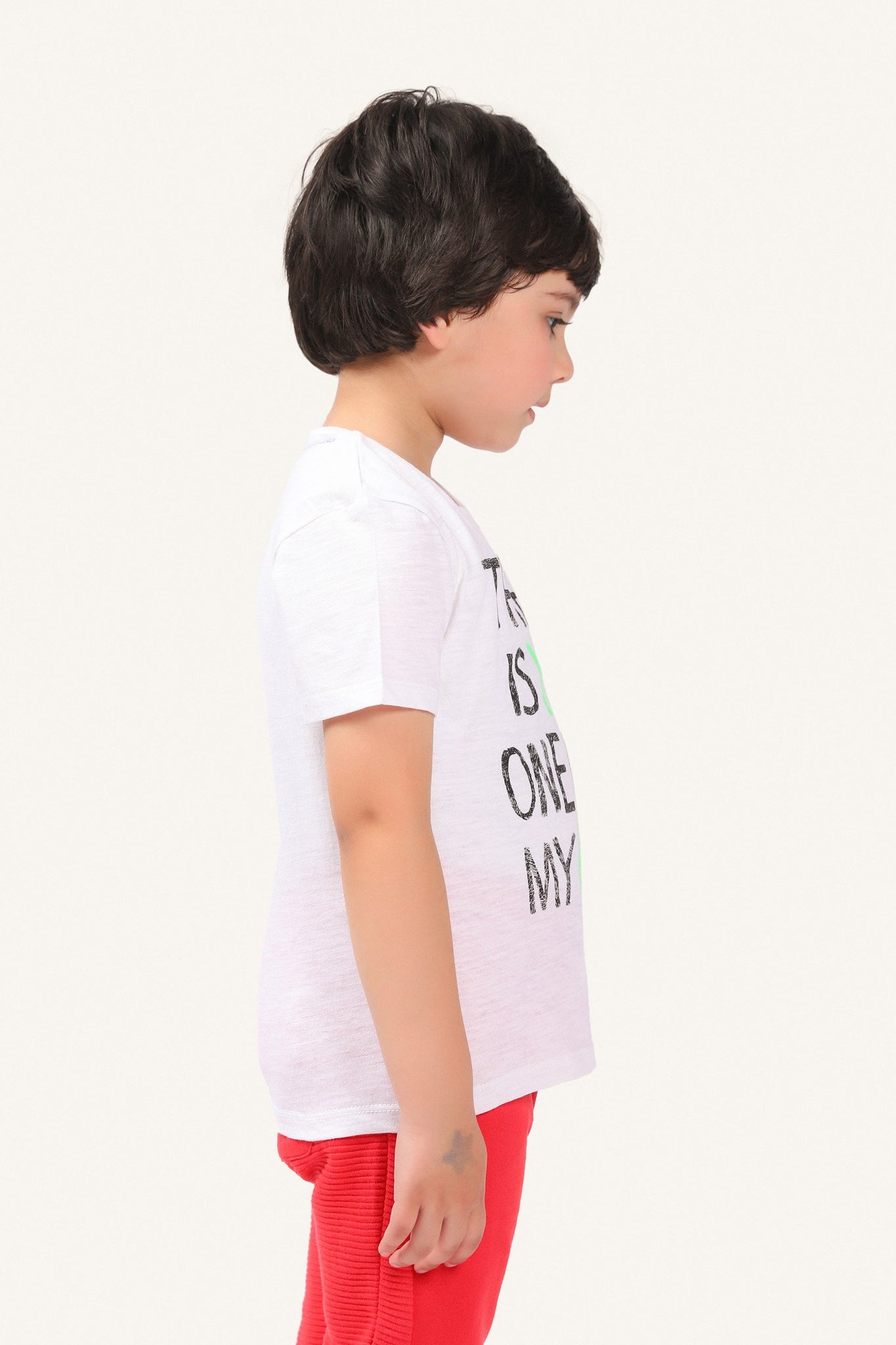 Graphic t-shirt with half sleeves, round neck and statement tapping on front