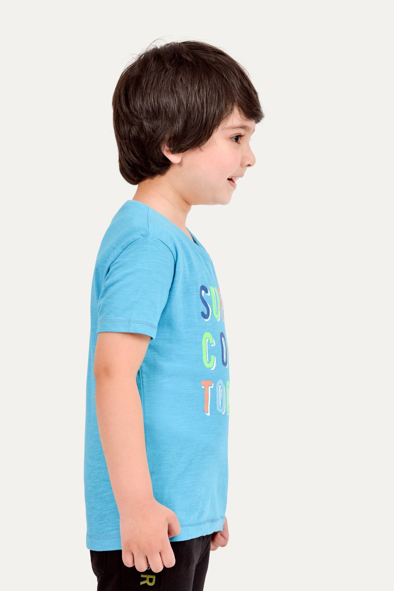 Round neck shirt with half sleeves and statement tapping on front