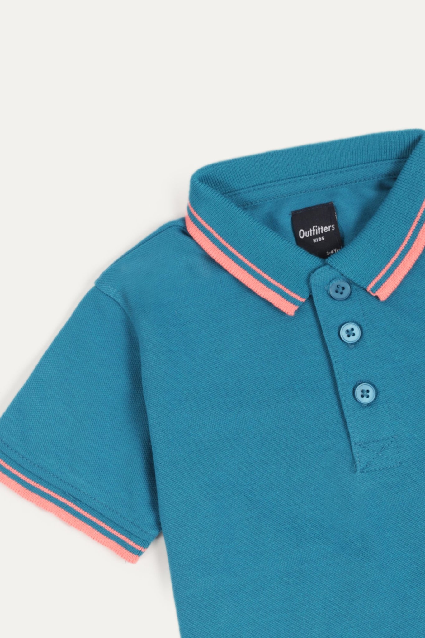 Polo Shirt with buttoned collar front, half sleeves, plain printed front and back