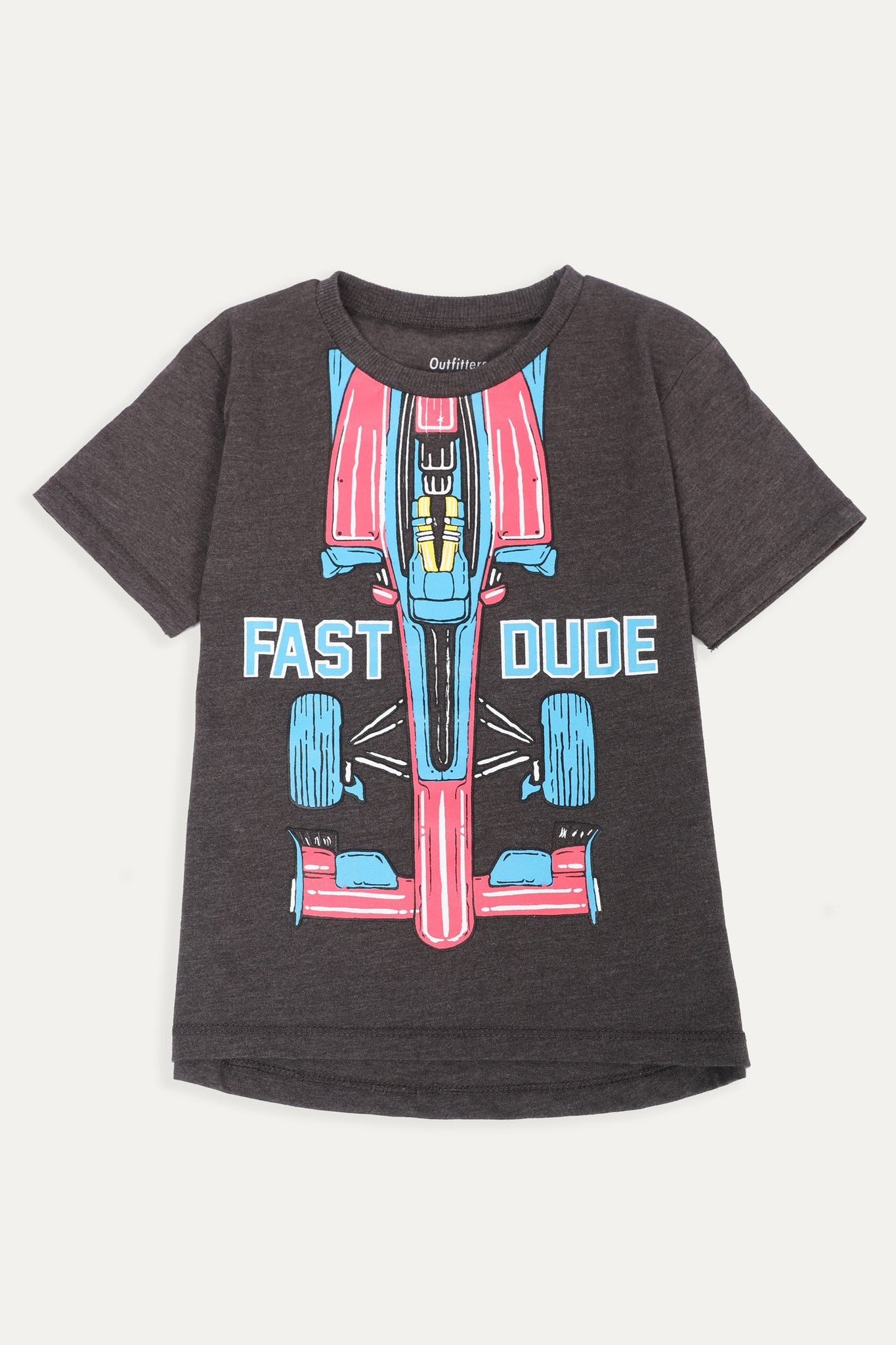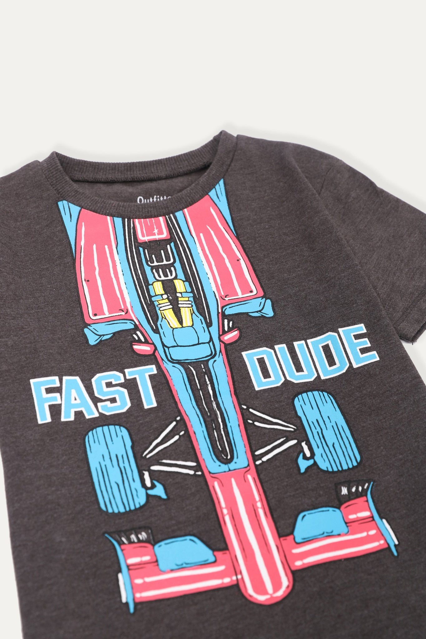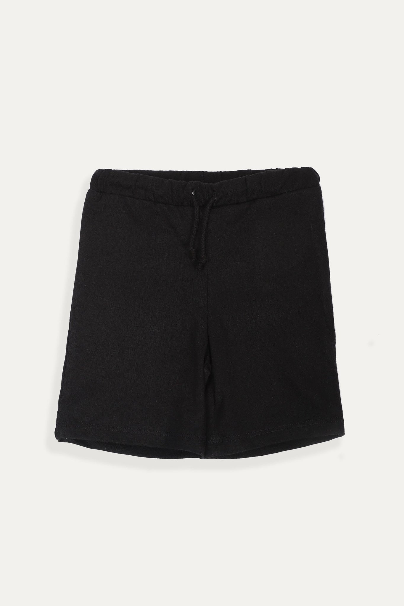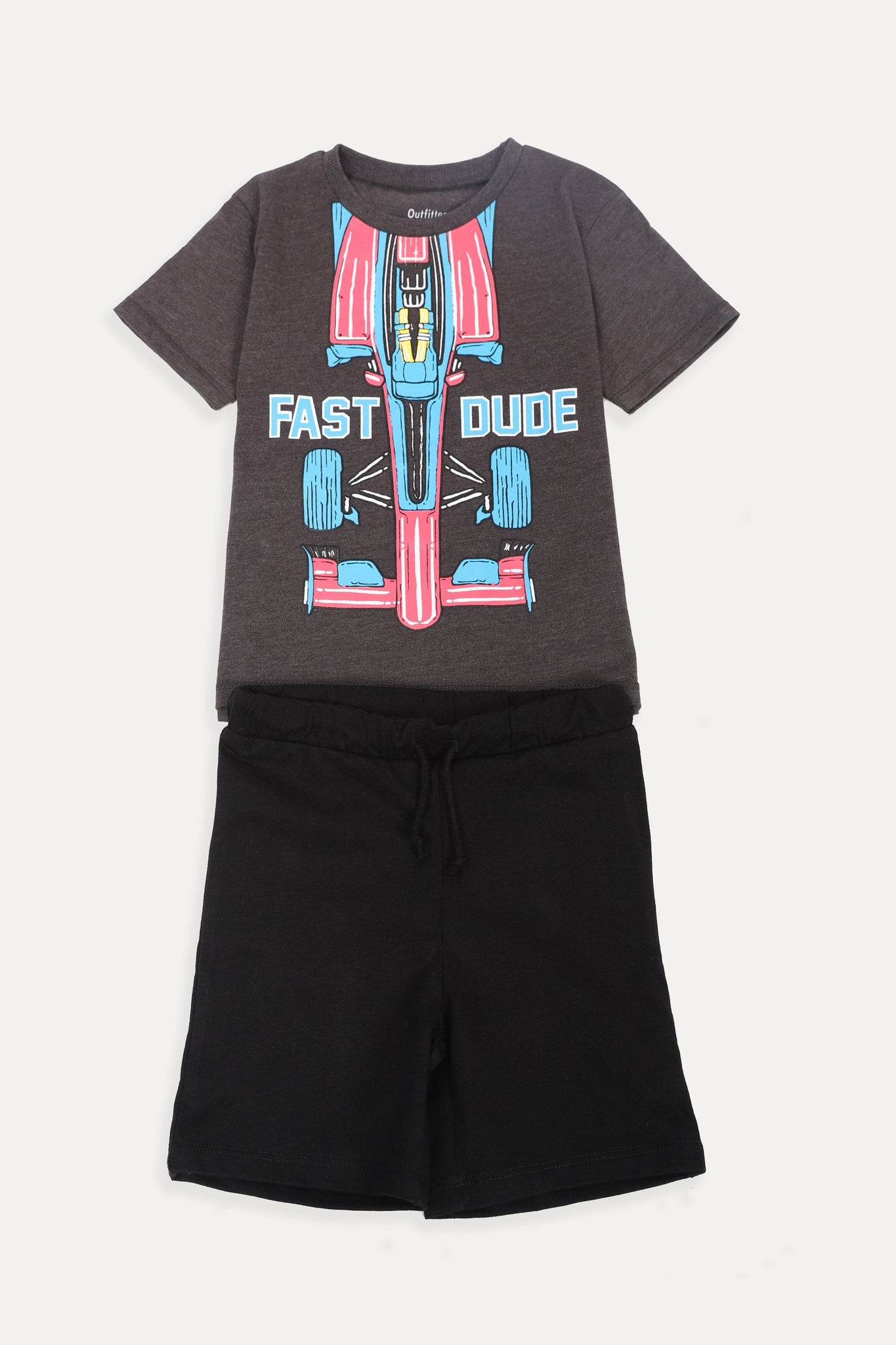 Half sleeve graphic t-shirt paired with cotton shorts featuring self-fastening drawstrings at waist