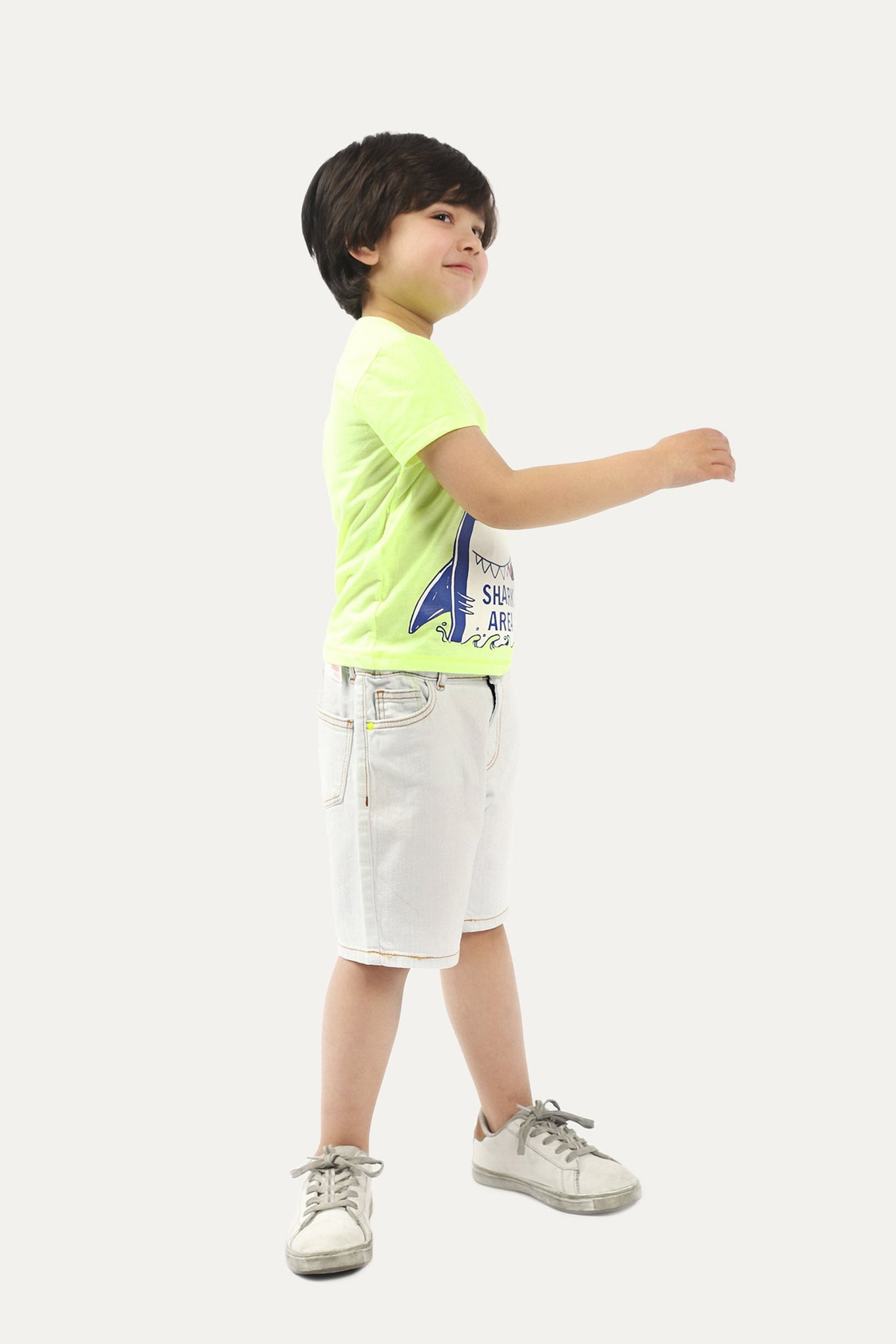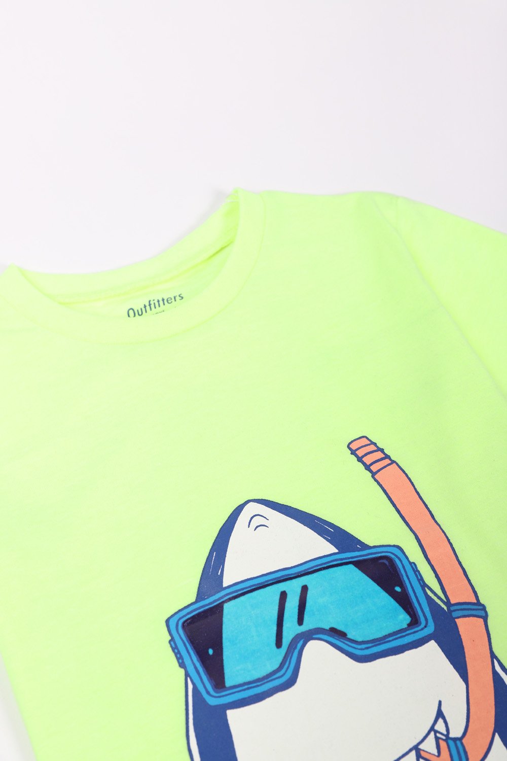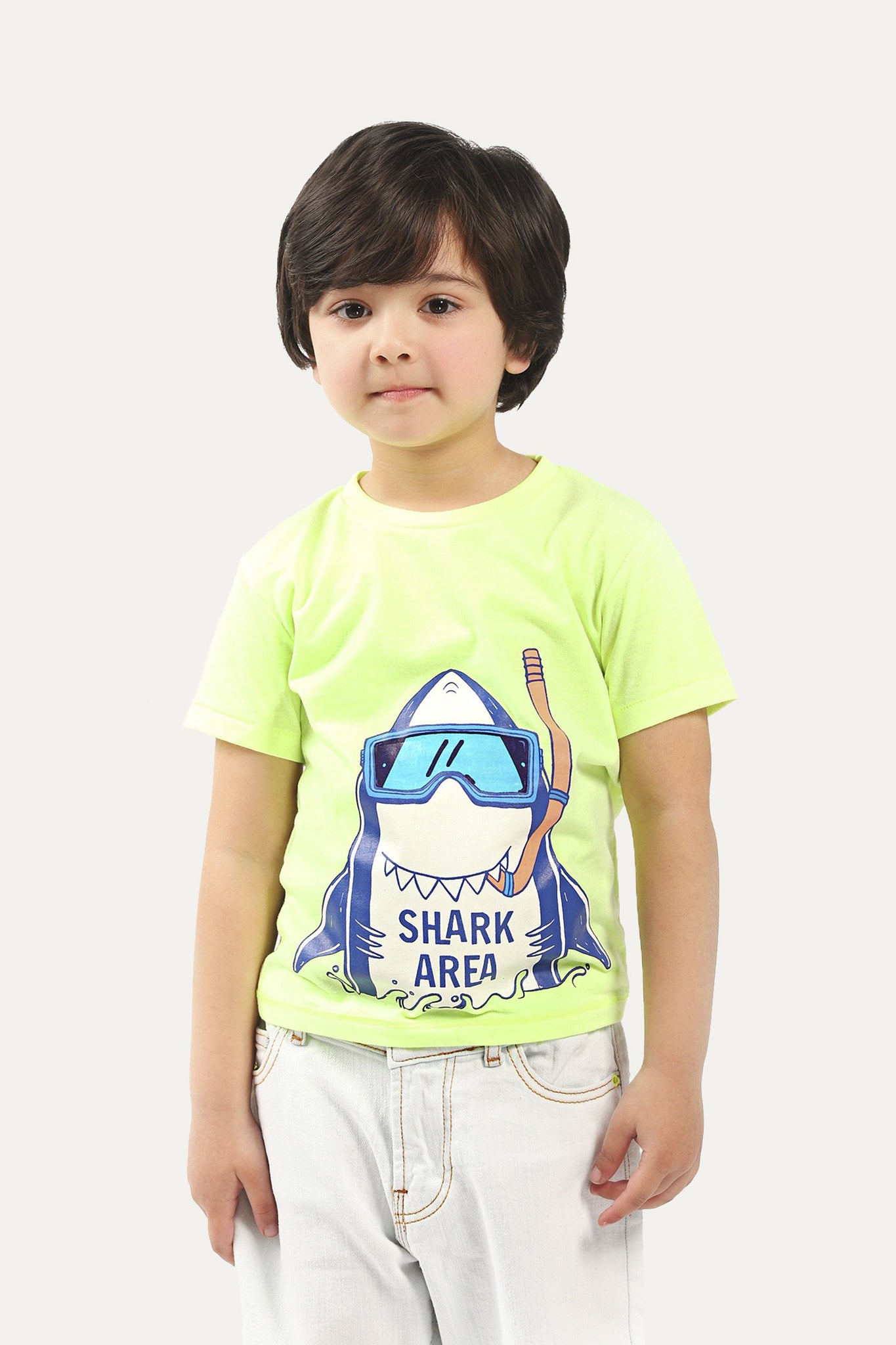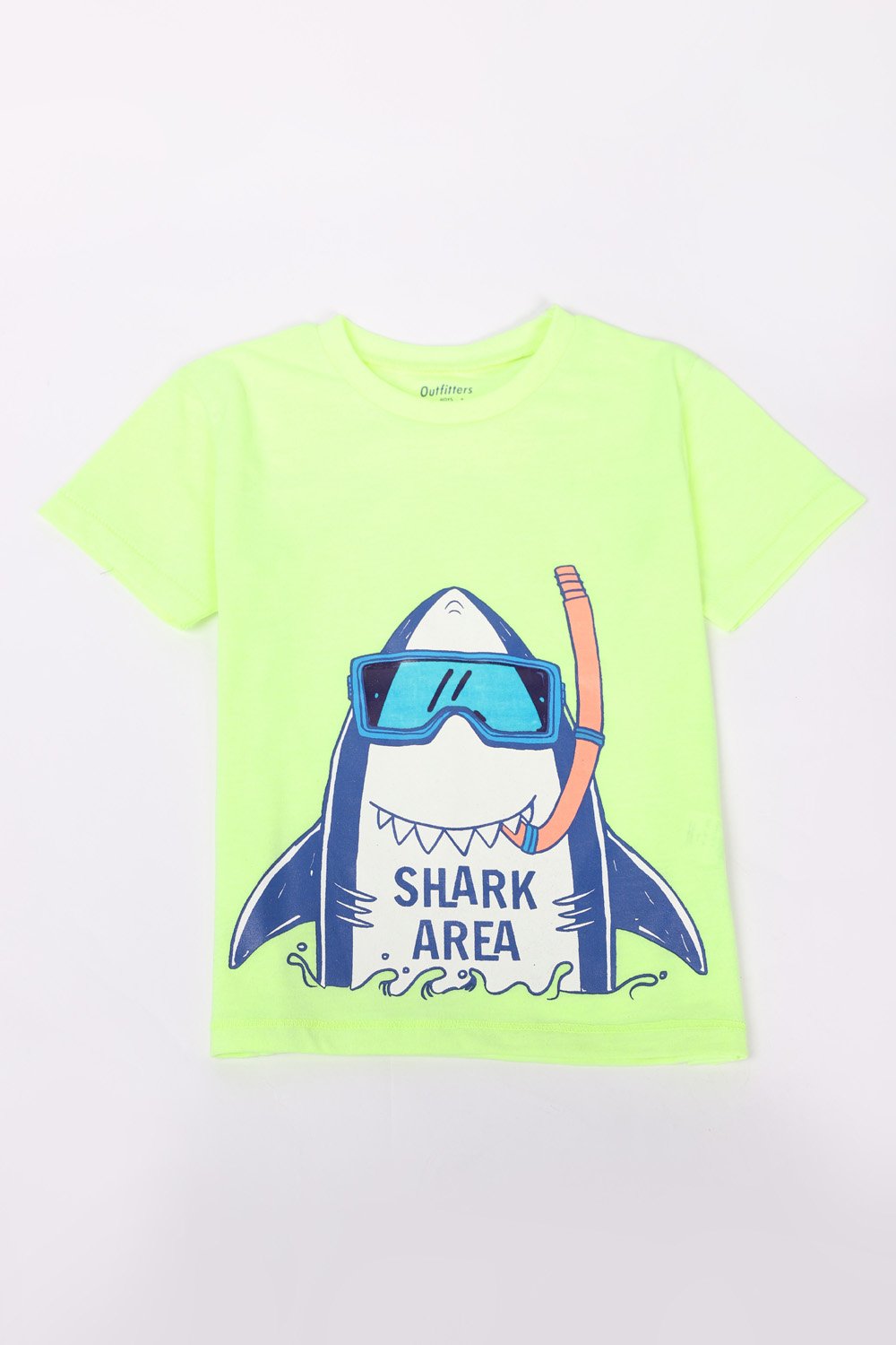 Half sleeve t-shirt with a round neck and shark graphic print on front
