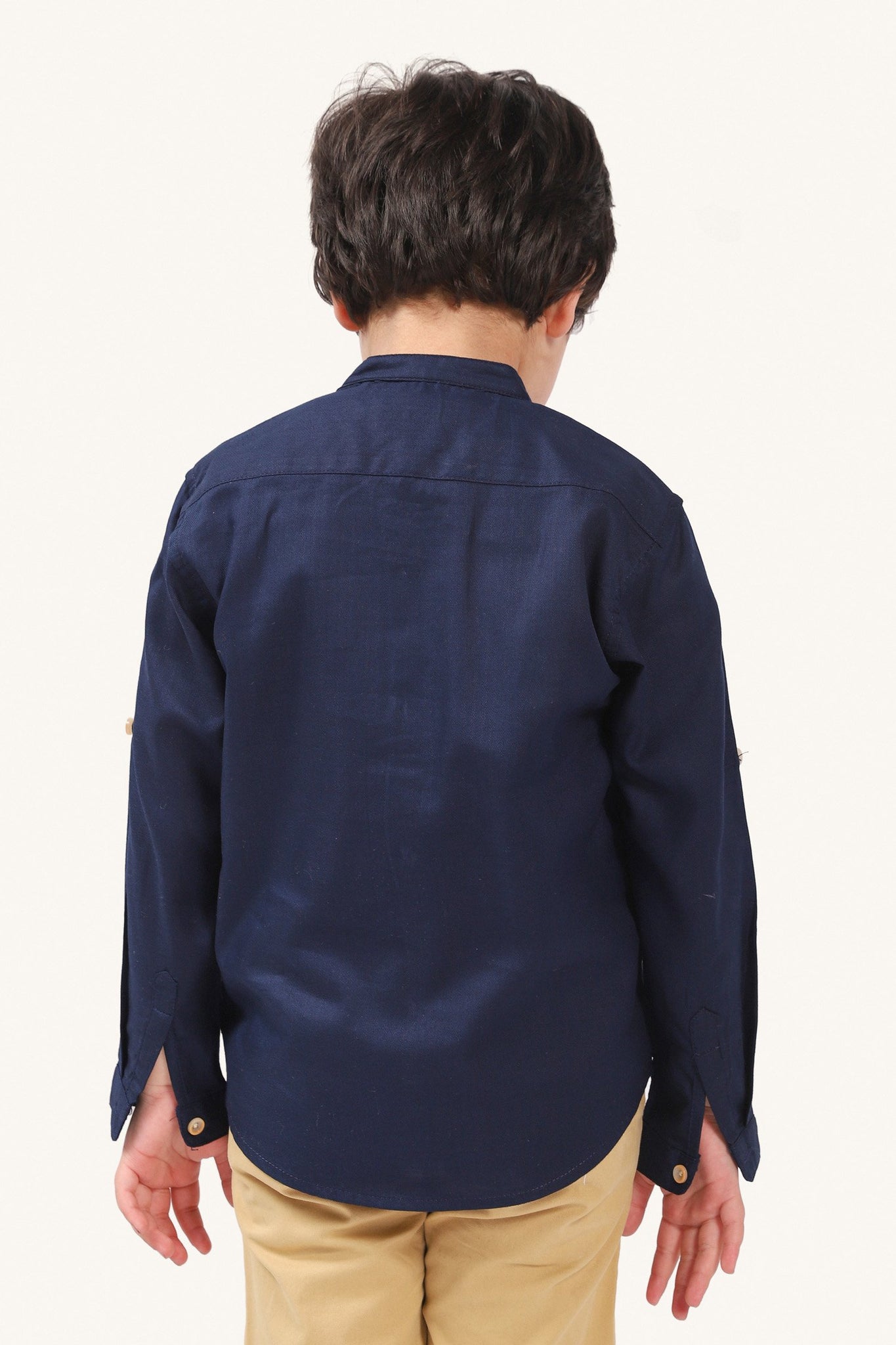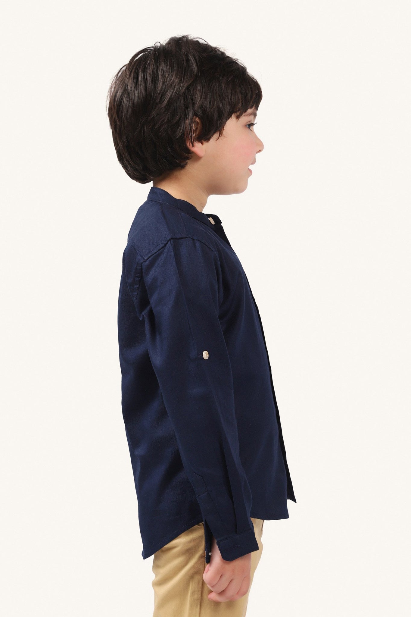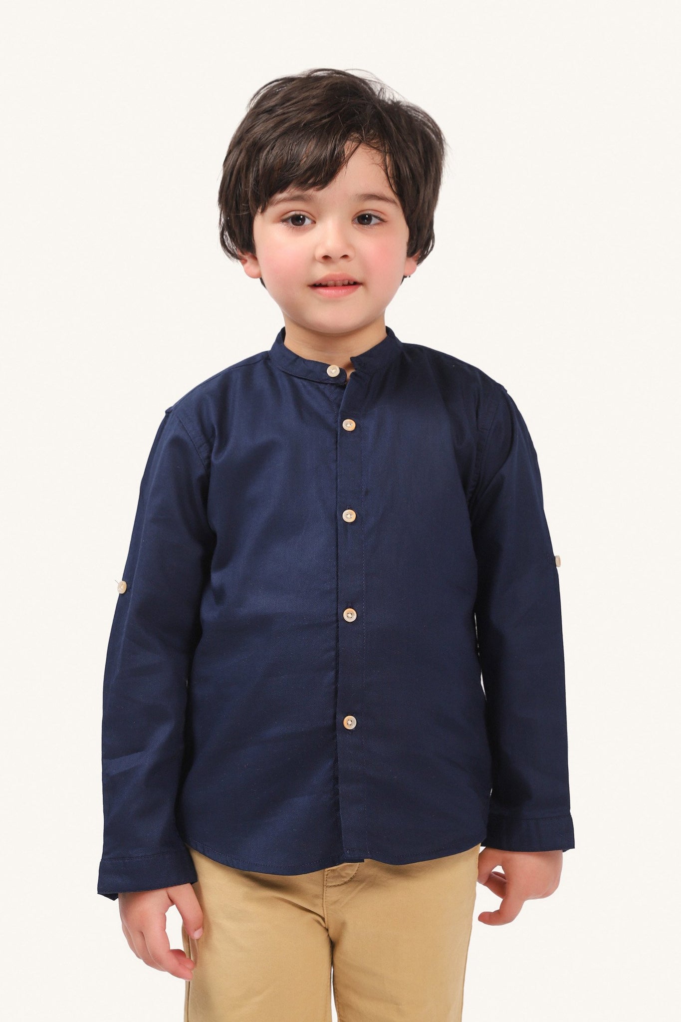 Henley collar shirt featuring full sleeves, button down front, buttoned cuffs, lining design and adjustable sleeves design