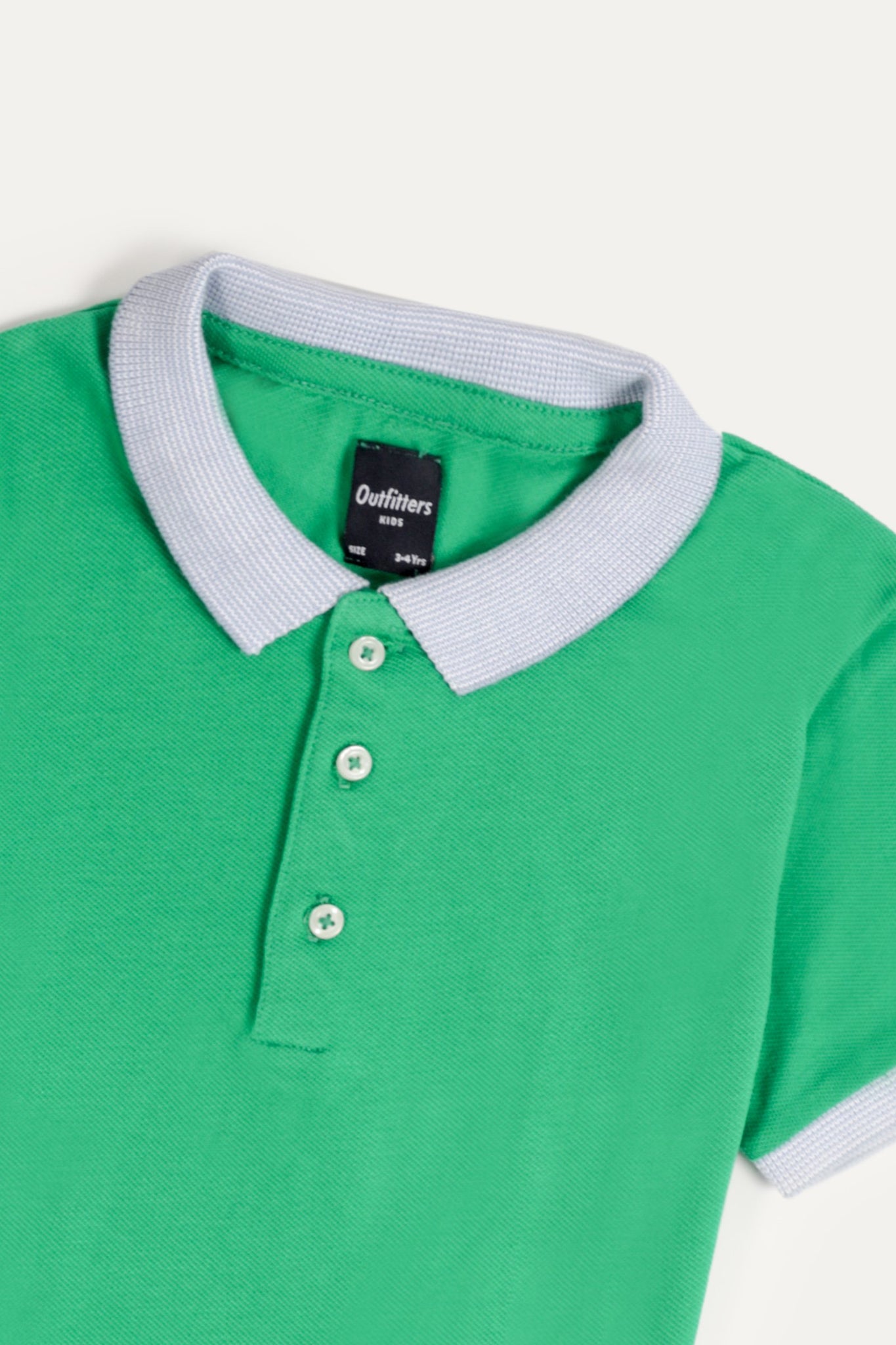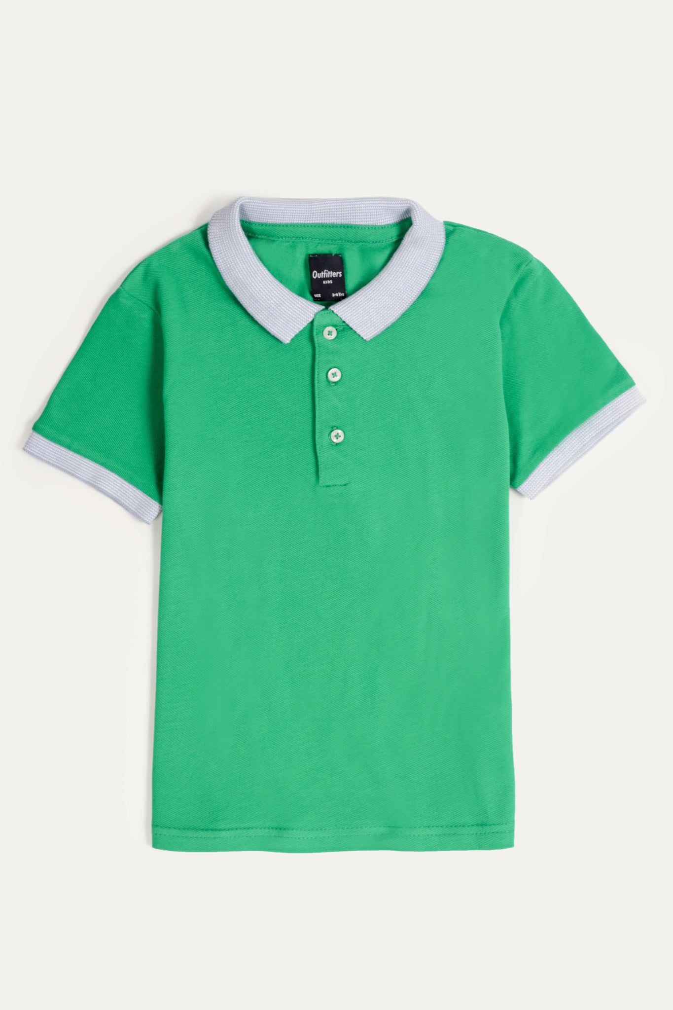 Polo Shirt with buttoned collar front, half sleeves, plain printed front and backComposition & Care: