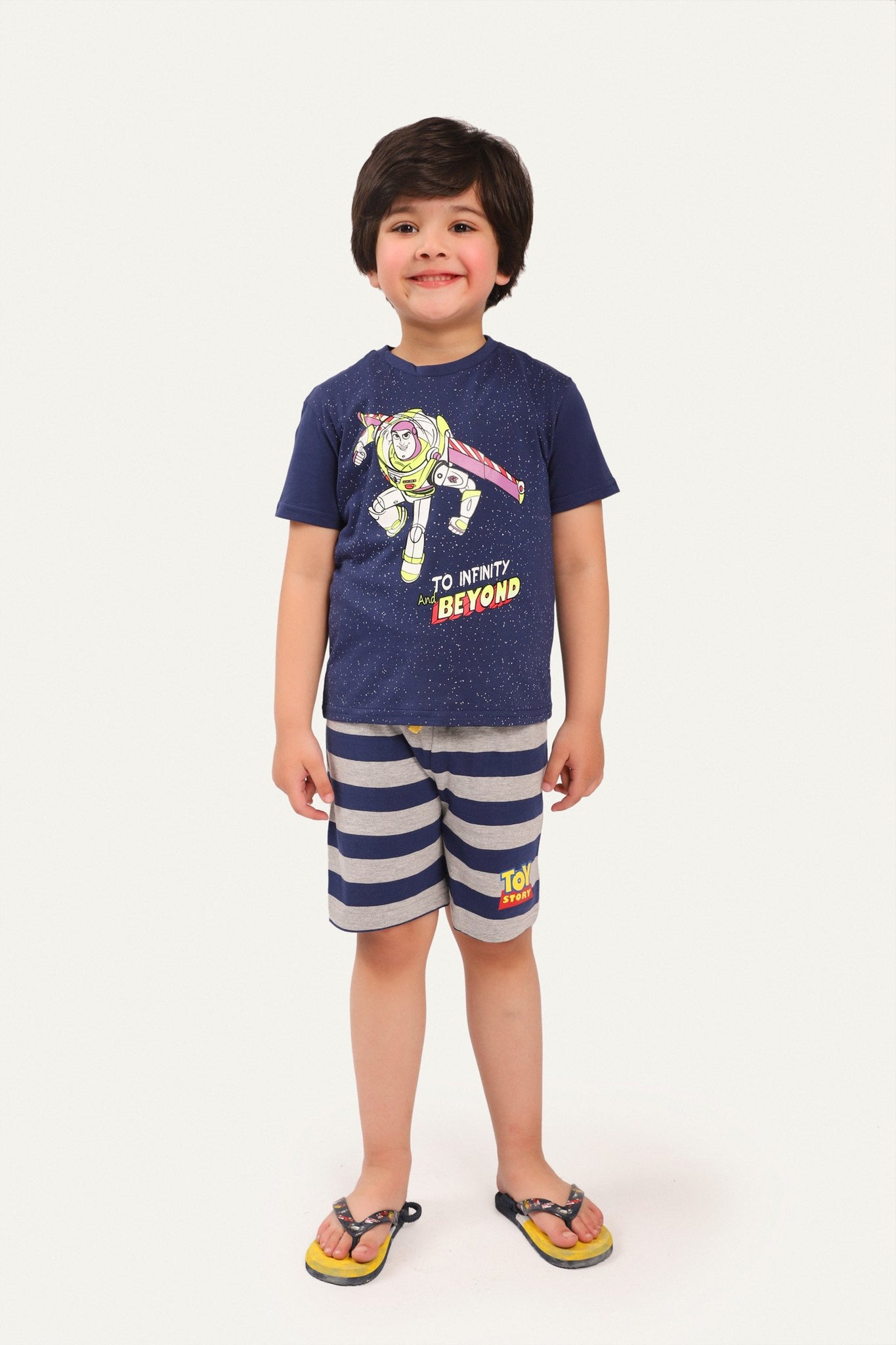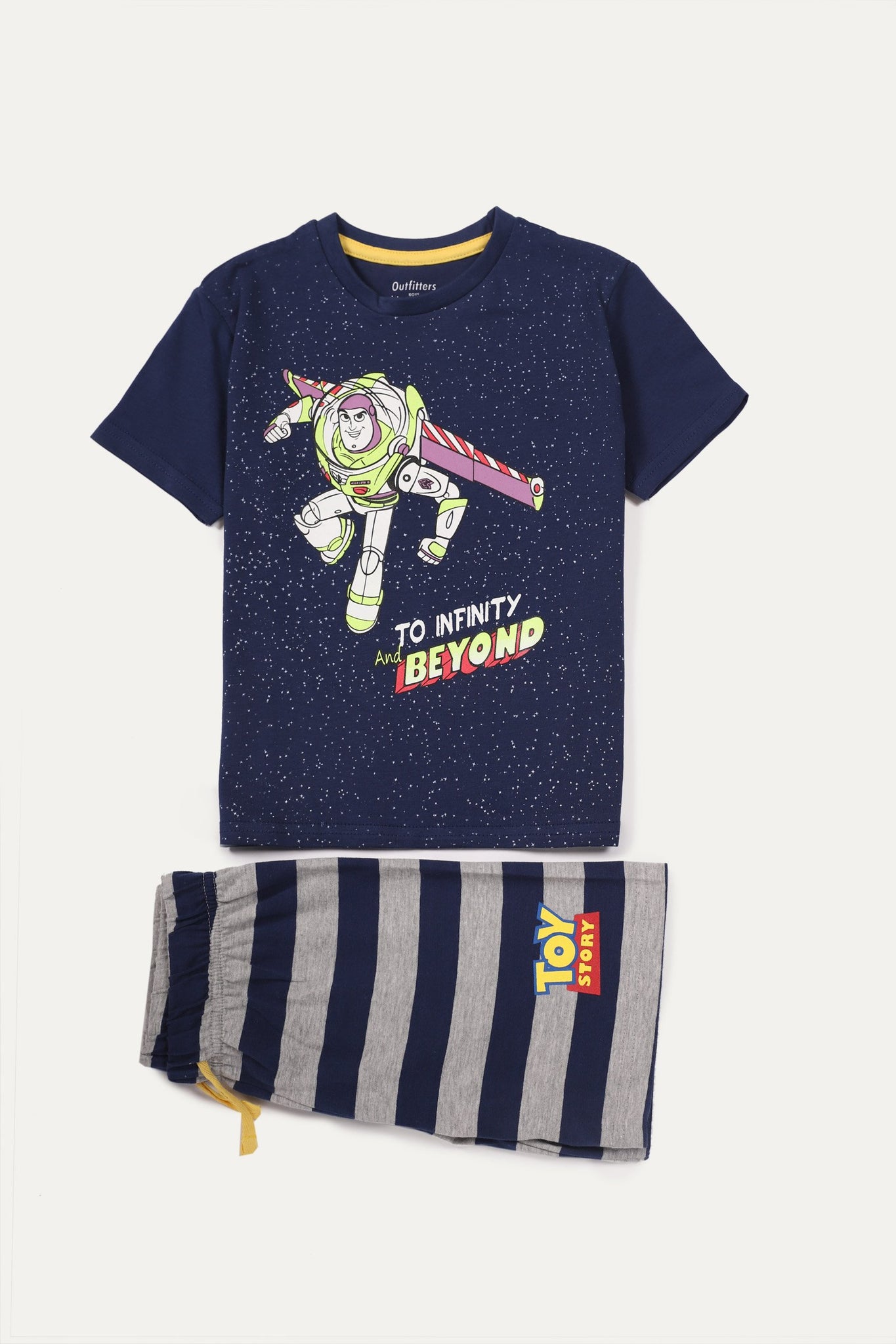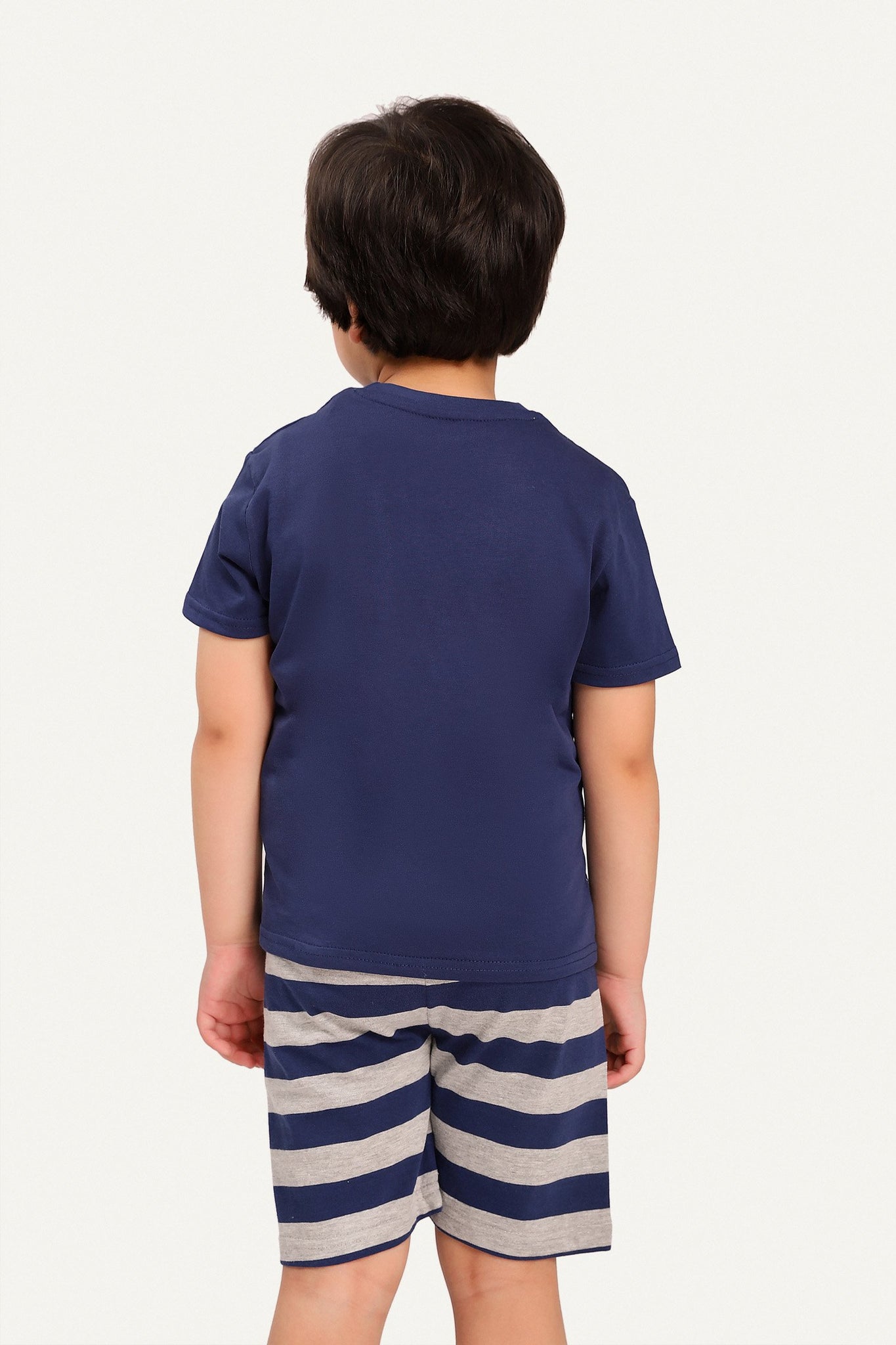 Half sleeve printed shirt with lining print shorts, featuring round neck and plain back