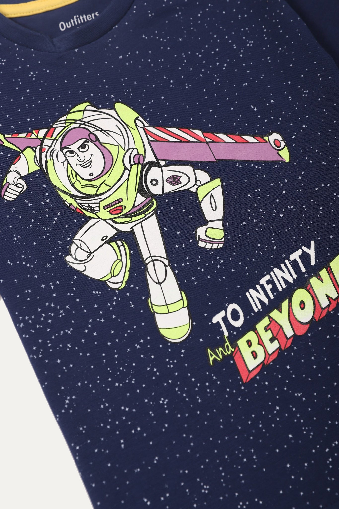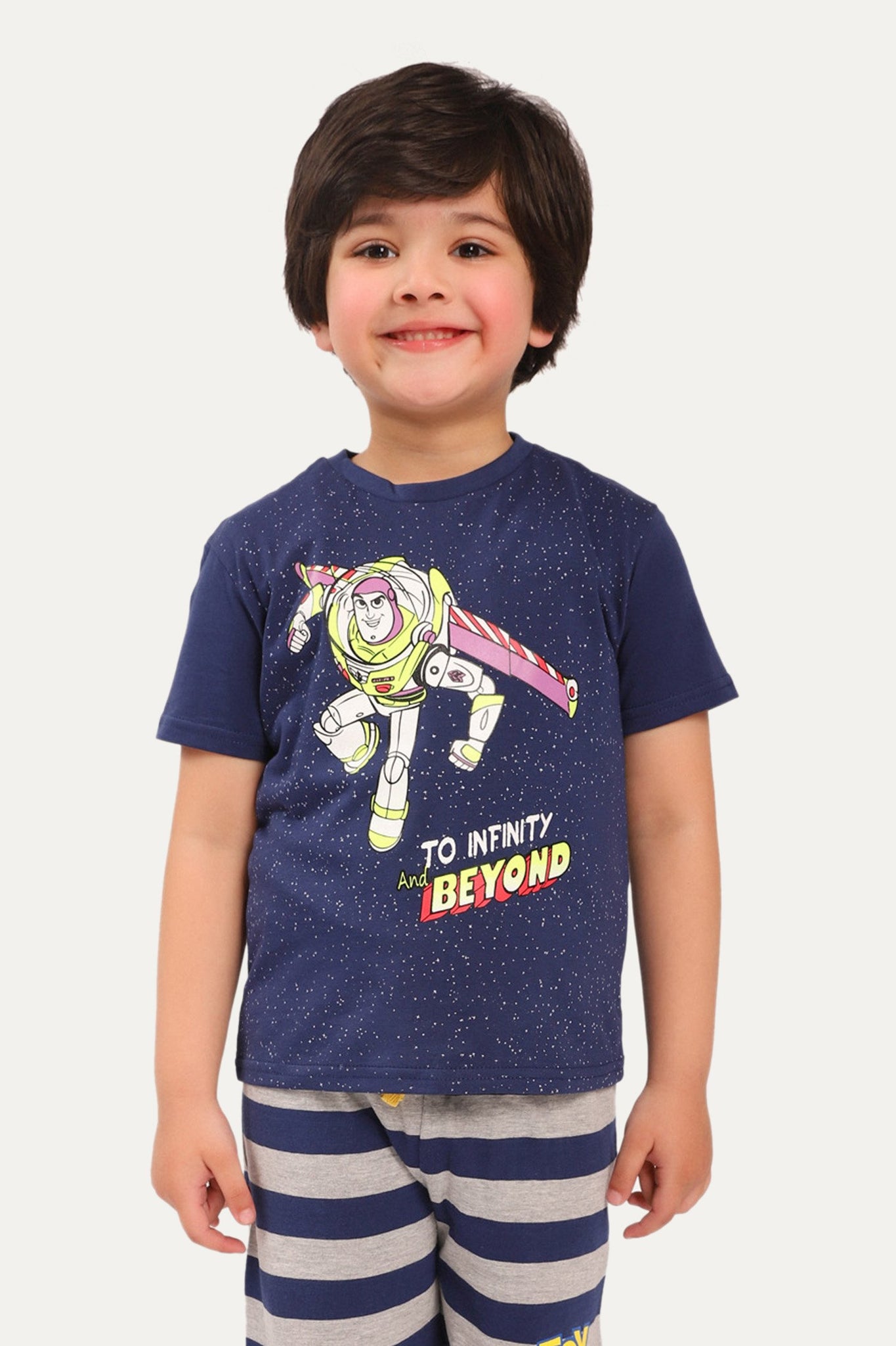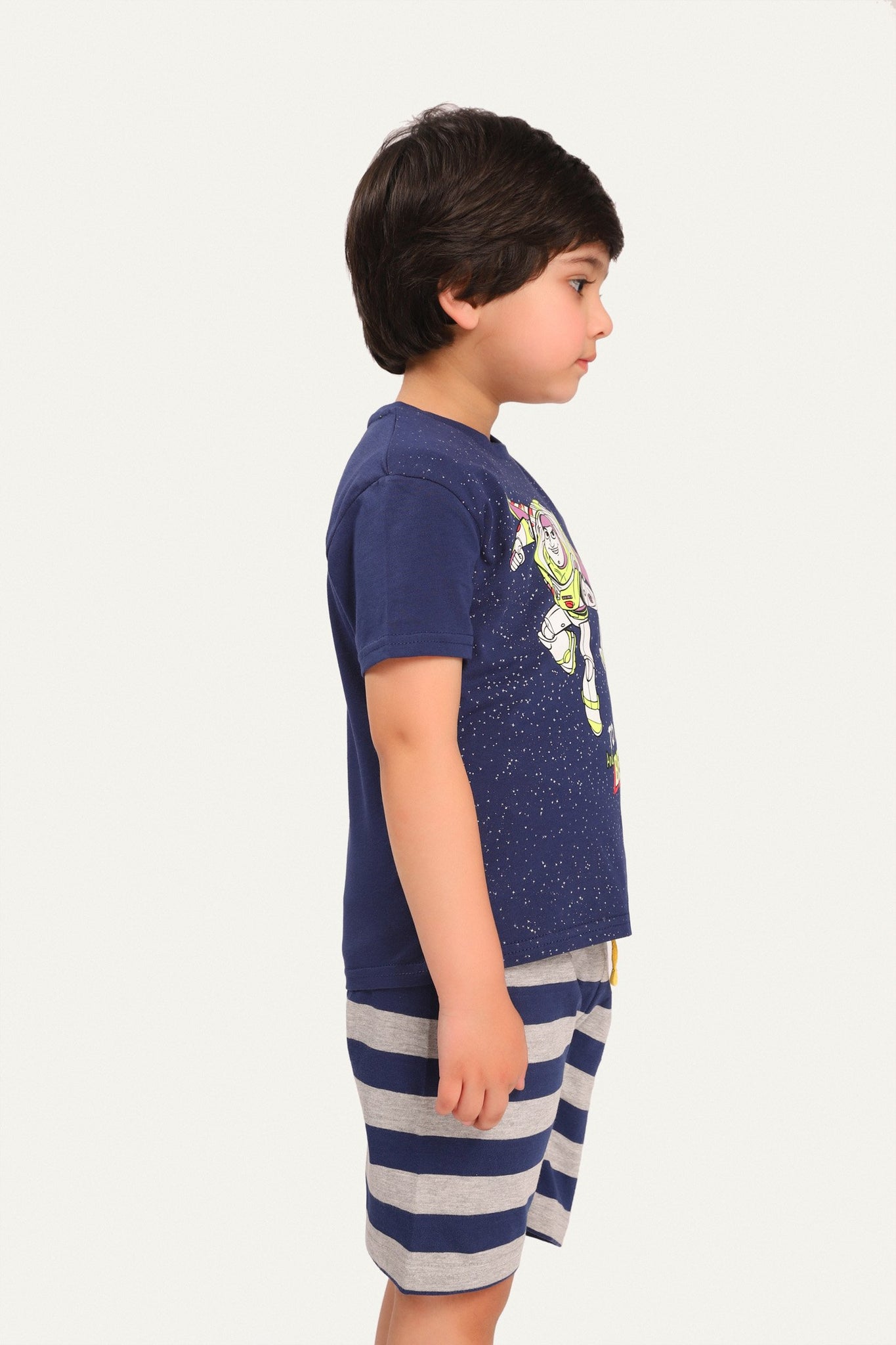 Half sleeve printed shirt with lining print shorts, featuring round neck and plain back