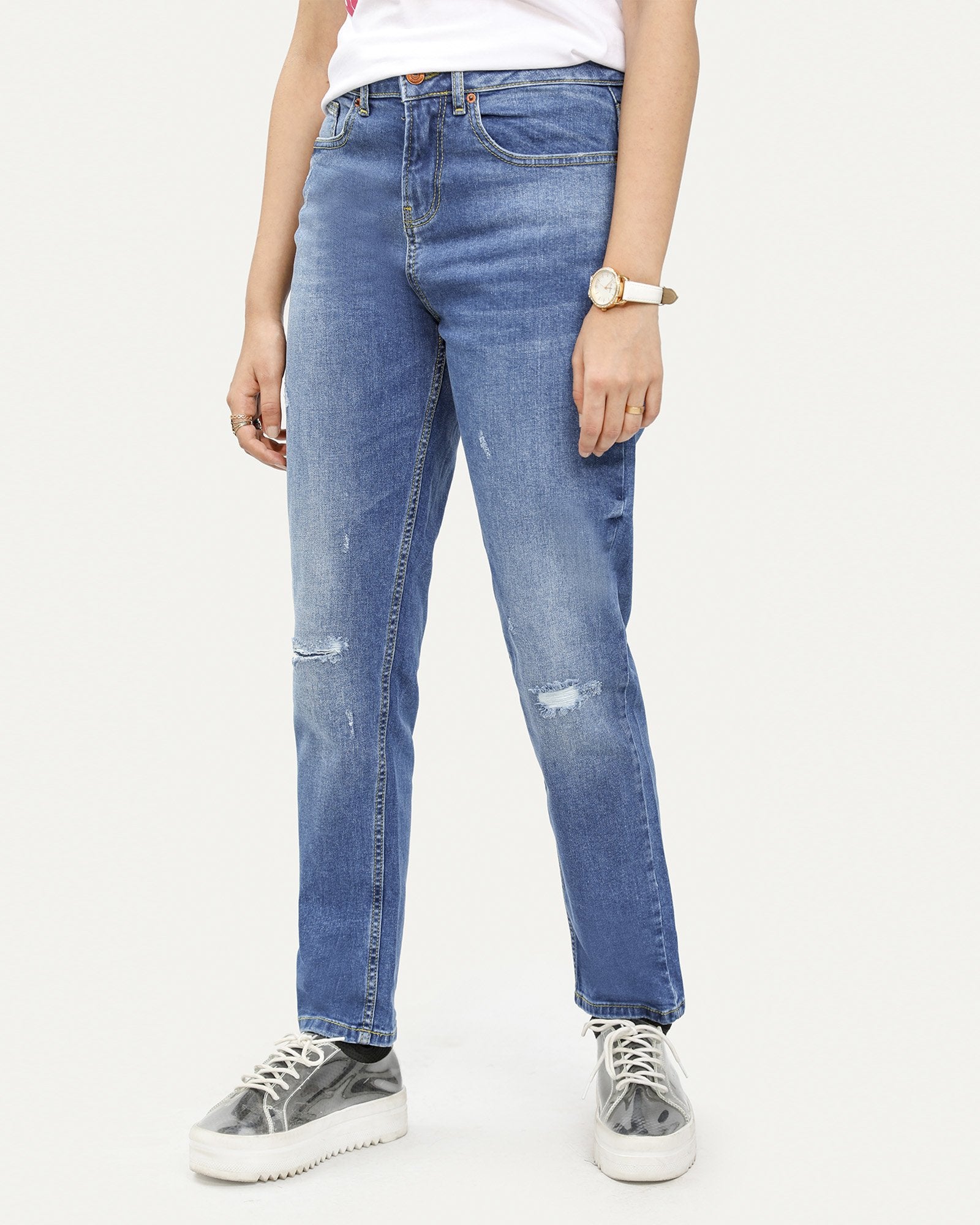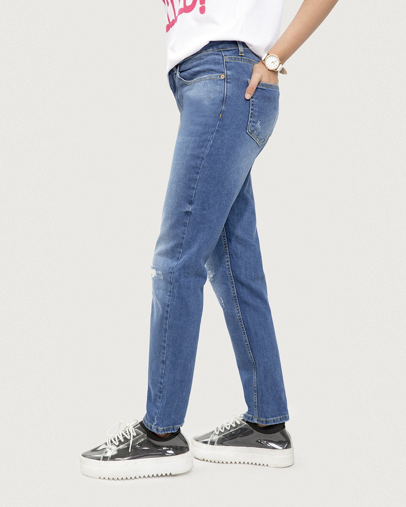 Boyfriend Fit Ripped Denim Jeans