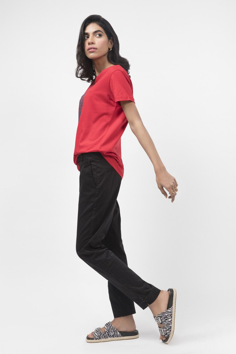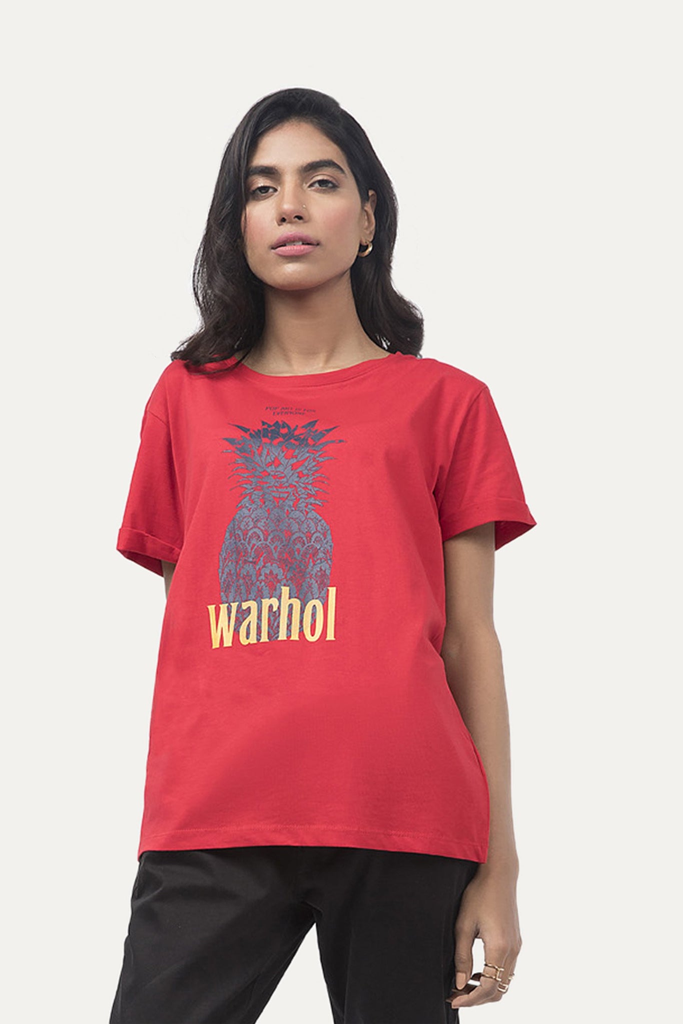 Graphic t-shirt with a round neck, half sleeves and printed graphic design on front