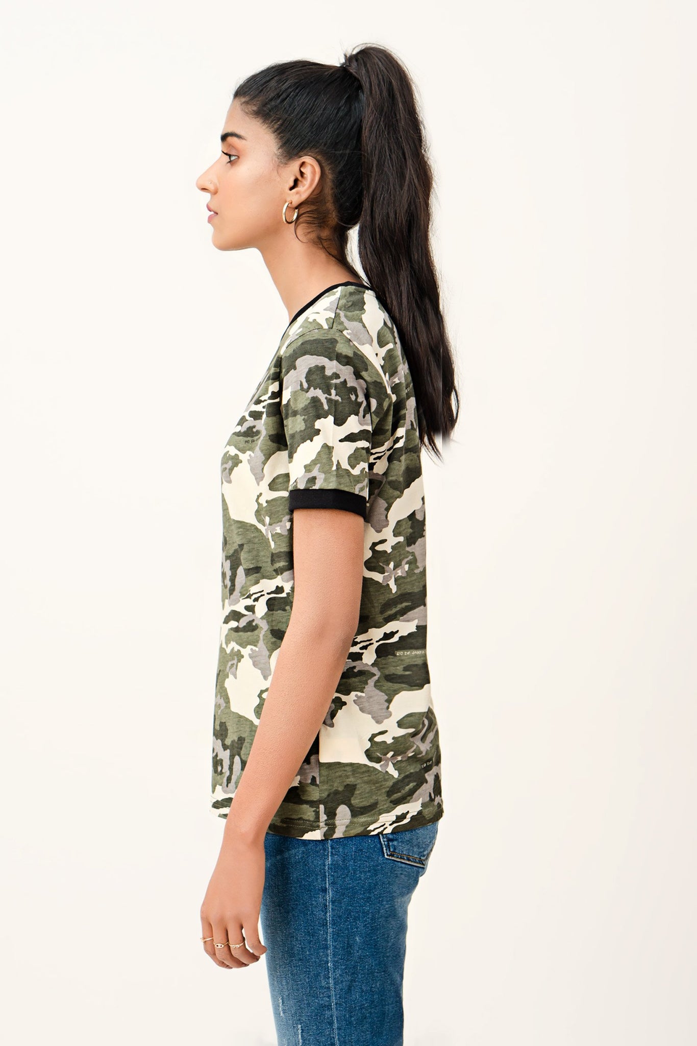 Camouflage Printed t-shirt with round neck, half sleeves, printed front and back