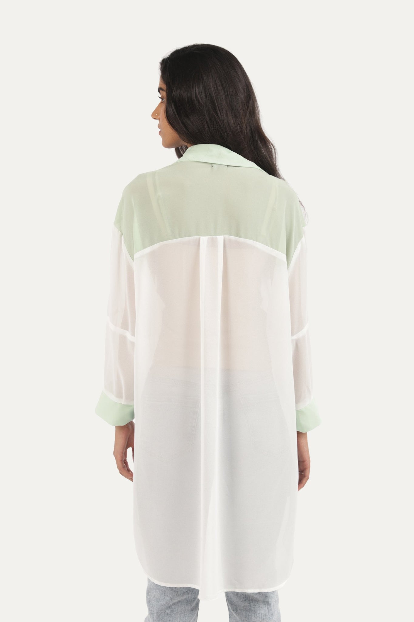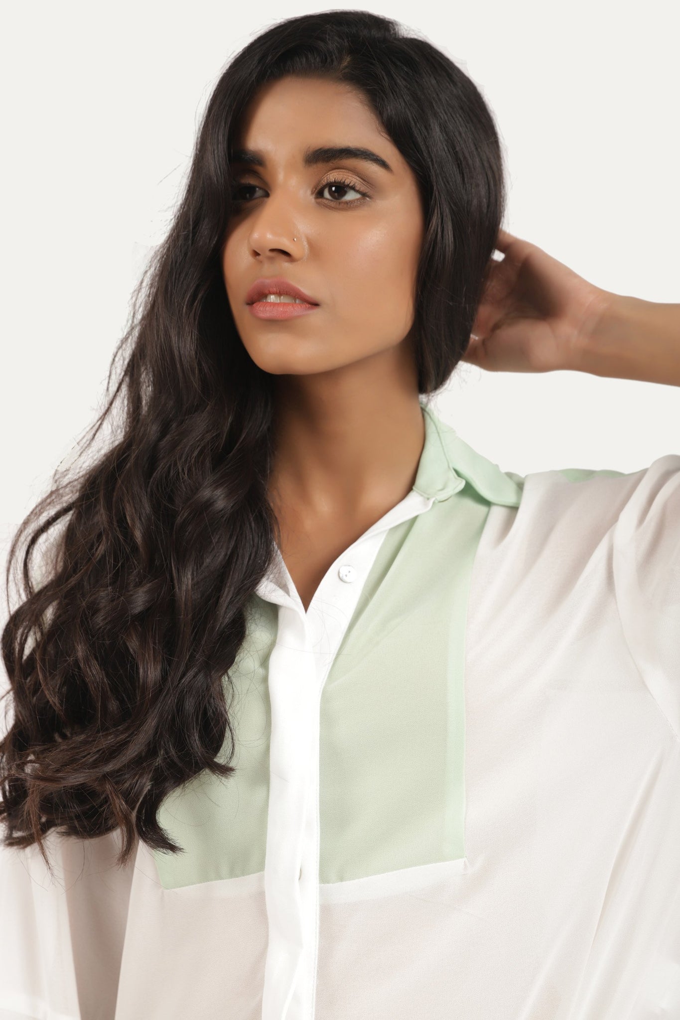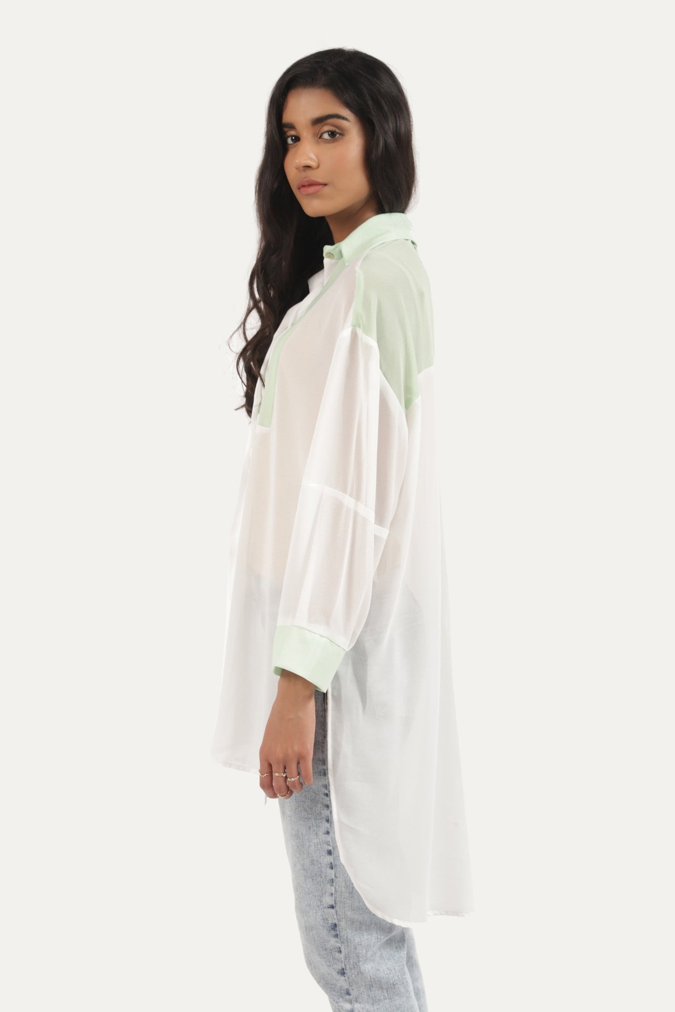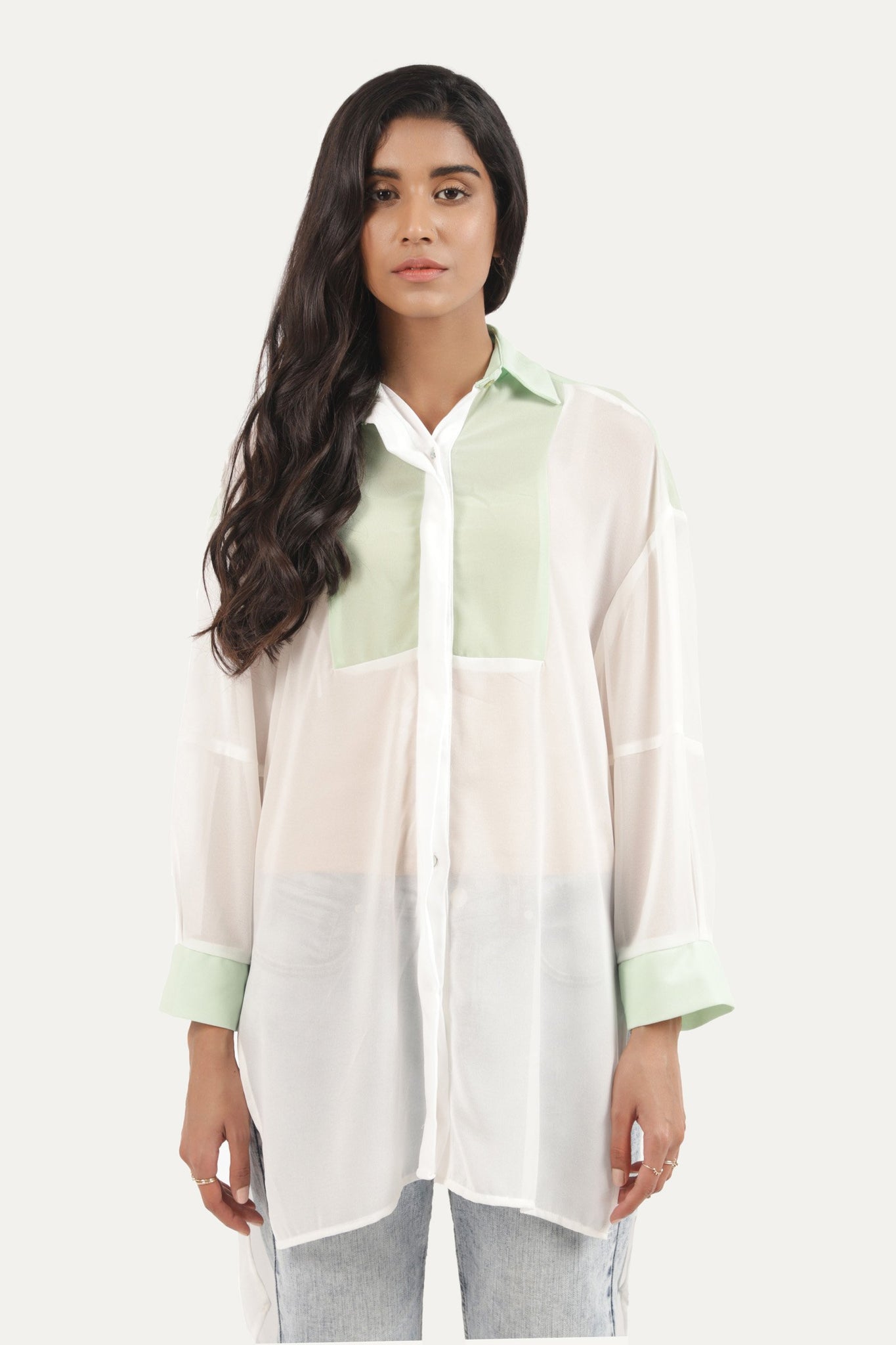 Shirt featuring buttoned collar, full sleeves, patch design front and plain back